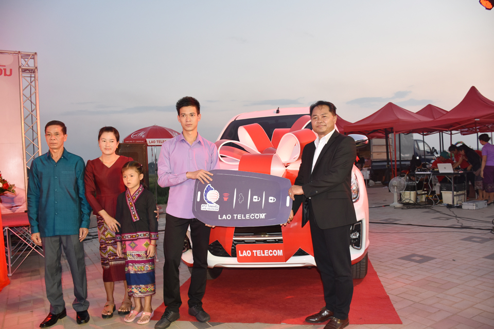ວັນທີ 29 ເມສາຜ່ານມາທີ່ເດີ່ນຜາມໄຊແຄມຂອງທ່າວັດຈັນນະຄອນຫຼວງວຽງຈັນລາວໂທລະຄົມໄດ້ຈັດພິທີມອບລາງວັນລົດໃຫຍ່ໂຕໂຍຕ້າຣີໂວ (Toyota Revo) ໃຫ້ລູກຄ້າຜູ້ໂຊກດີໃຫ້ກຽດມອບໂດຍທ່ານ ຈິດປະສົງ ໜູແກ້ວ ໄກສອນ ຮອງຜູ້ອຳນວຍການບໍລິສັດລາວໂທລະຄົມມະນາຄົມມະຫາຊົນຮັບໂດຍທ່ານ ຄຳແດງ ໄທແກ່ນ ຢູ່ບ້ານໃໝ່ ເມືອງຊຽງຮ່ອນ ແຂວງໄຊຍະບູລີ ຜູ້ໂຊກດີໄດ້ຮັບລາງວັນລົດໃຫຍ່ຈາກການຂູດບັດຕື່ມເງິນລາຄາ 10 ພັນກີບ ຊຶ່ງມີບັນດາ ພາກສ່ວນທີ່ກ່ຽວຂ້ອງ ແລະສື່ມວນຊວນເຂົ້າຮ່ວມ.