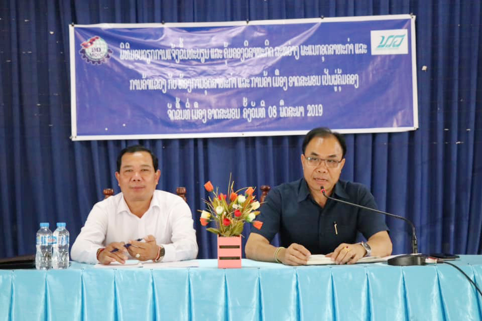 ພິທີເຊັນບົດບັນທຶກມອບ-ຮັບວຽກແຈ້ງຂຶ້ນທະບຽນ ແລະຄຸ້ມຄອງວິສາຫະກິດລະຫວ່າງພະແນກອຸດສາຫະກຳ ແລະການຄ້າແຂວງສະຫວັນນະເຂດກັບຫ້ອງ ການອຸດສາຫະກຳ ແລະການຄ້າເມືອງອາດສະພອນເປັນຜູ້ຄຸ້ມຄອງໄດ້ຈັດຂຶ້ນໃນວັນທີ 8 ພຶດສະພາ ຜ່ານມາທີ່ສະໂມສອນ ເມືອງອາດສະພອນ ແຂວງສະຫວັ ນນະເຂດ, ໂດຍການເຂົ້າຮ່ວມຂອງທ່ານ ແສງທອງ ວັງແກ້ວມະນີ ເຈົ້າເມືອງອາດສະພອນ, ທ່ານ ໂພສີສ້ອຍ ກຸທິລາດ ຮອງຫົວໜ້າພະແນກອຸດສາຫະກຳ ແລະການຄ້າແຂວງສະຫວັນນະເຂດ, ມີບັນດາທ່ານຫົວໜ້າຫ້ອງການ, ກົມກອງອ້ອມຂ້າງເມືອງເຂົ້າຮ່ວມ.