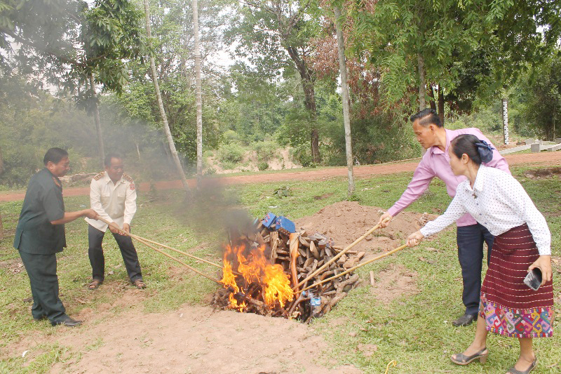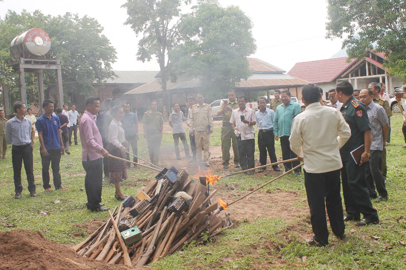 ຂອງກາງທີ່ນຳມາທຳລາຍໃນຄັ້ງນີ້ປະກອບມີອາວຸດລ່າເນື້ອປະເພດປືນແກັບ 204 ກະບອກ, ປືນແວງ 5 ກະບອກ, ເຄື່ອງໄຟຟ້າຊອດປາ 12 ເຄື່ອງ ແລະ ໝາກແຕກ 2 ໜ່ວຍ, ສ່ວນໝາກແຕກແມ່ນໄດ້ມອບໃຫ້ກັບອົງການເກັບກູ້ລະເບີດປະຈຳເມືອງບົວລະພາເປັນຜູ້ທຳລາຍ.