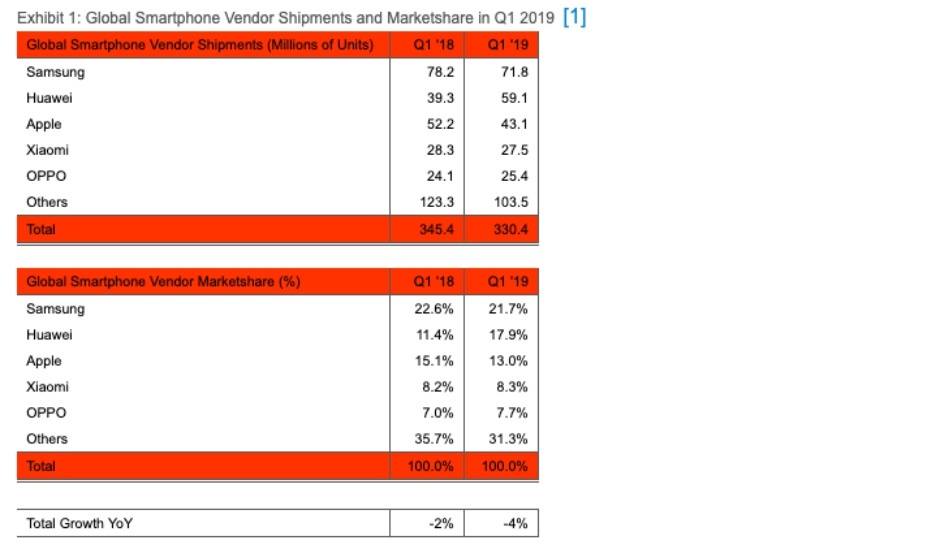 ຈາກການລາຍງານຂອງບໍລິສັດວິໄຈທັງ Strategy Analitics ແລະIDC ລາຍງານວ່າຕົວເລກຜົນປະກອບການລວມໃນໄຕມາດທຳອິດຂອງປີນີ້ເມື່ອທຽບກັບປີທີ່ແລ້ວຍັງຄົງເປັນໄລຍະຖົດຖອຍຂອງຕະຫຼາດສະມາດໂຟນໂດຍລວມສະເລ່ຍຍອດຂາຍຫຼຸດລົງ 4%-6% ຊຶ່ງຖືວ່າເປັນຕົວເລກຕົກລົງຕໍ່ເນື່ອງຕະຫຼອດ 6 ໄຕມາດທີ່ຜ່ານມາແຕ່ສິ່ງທີ່ເໜືອເທຣນຂອງຕະຫຼາດຊົບເຊົາໃນເວລານີ້ກັບເປັນສັນຍານເຕີບໂຕລະດັບ ”ປາກົດການຂອງ”ຂອງ Huawei.