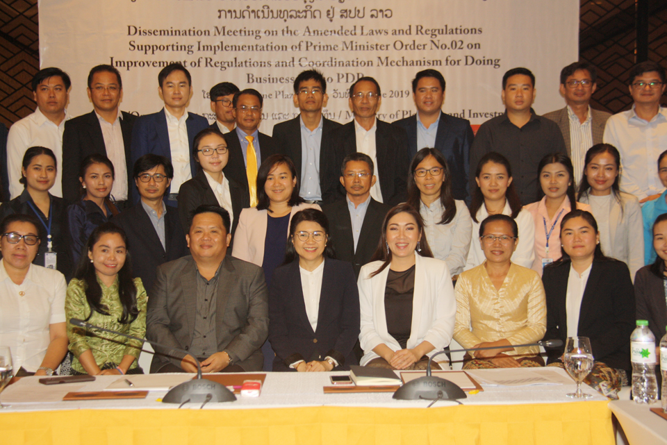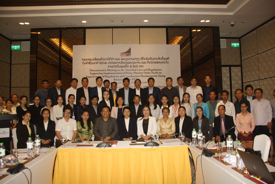 ກອງປະຊຸມເຜີຍແຜ່ບັນດານິຕິກໍາ ແລະລະບຽບການເພື່ອສະໜັບສະໜູນການຈັດຕັ້ງປະຕິບັດຄໍາສັ່ງເລກທີ 02/ນຍ ໄດ້ຈັດຂຶ້ນໃນວັນທີ 26 ມິຖຸນາ 201 9 ທີ່ນະ ຄອນຫຼວງວຽງຈັນ ພາຍໃຕ້ການເປັນປະທານຂອງທ່ານ ອຸຕະແກ້ວ ແກ້ວດວງສິນ ຫົວໜ້າກົມສົ່ງເສີມການລົງທຶນ, ທ່ານນາງ ວາລີ ເວດຊະພົງ ຮອ ງປະທານສະພາການຄ້າ ແລະອຸດສະຫະກໍາແຫ່ງຊາດລາວ, ມີຄະນະກົມ, ພະແນກ, ວິຊາການ ແລະຕາງໜ້າຈາກຫົວໜ່ວຍທຸລະກິດເຂົ້າຮ່ວມ.