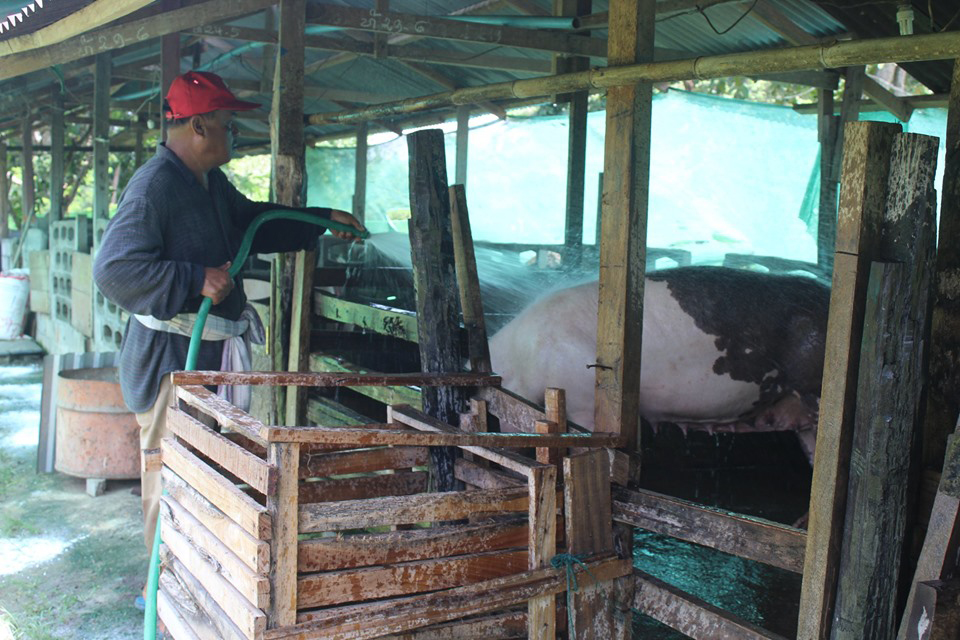 ນາງ ດວງ ສິດທິພອນ ໃຫ້ຮູ້ວ່າ: ໃນເມື່ອກ່ອນແມ່ນເຄີຍມີອາຊີບເຮັດນາ ແລະຄ້າຂາຍເປັນຫຼັກແຕ່ສາມາດສ້າງລາຍຮັບໃຫ້ກັບຄອບຄົວພໍແຕ່ກຸ້ມກິນເທົ່ານັ້ນຕໍ່ມາໄດ້ຫັນມາຄົ້ນຫາເຮັດສິ່ງໃໝ່ໆ ແລະເຫັນວ່າການລ້ຽງໝູອາດເປັນທາງເລືອກໜຶ່ງ ເລີຍຫັນມາທົດ ລອງລ້ຽງ ແລະເຫັນວ່າໄດ້ຮັບໝາກຜົນດີມີລາຍໄດ້ເພີ່ມຂຶ້ນຈຶ່ງໄດ້ເກີດ ມີຄວາມມັກຮັກໃນອາຊີບນີ້ ໃນ ເບື້ອງຕົ້ນນັ້ນເລີ່ມລ້ຽງໝູພັນແບບພື້ນບ້ານ ກໍຄືໝູຈີດ ແຕ່ຍ້ອນລາຄາ ແລະຄວາມນິຍົມຊົມຊອບຂອງ ທ້ອງຕະຫຼາດບໍ່ດີເທົ່າທີ່ຄວນຈຶ່ງ ໄດ້ຫັນມາລ້ຽງໝູພັນຊີ້ນແທນ ເນື່ອງຈາກວ່າຫຼາຍຄົນໃຫ້ຄຳແນະ ນຳໃຫ້ທົດລອງລ້ຽງເບິ່ງ, ຈຶ່ງໄດ້ ນຳເອົາໝູພັນມາຈາກຄອບຄົວທີ່ ຮັກແພງກັນ ໃນຊຸດທຳອິດທີ່ເອົາ ມາລ້ຽງມີທັງໝົດ 15ໂຕໃນນັ້ນ ມີແມ່ພັນ 3 ໂຕ, ເມື່ອລ້ຽງແລ້ວກໍ່ ໄດ້ຮັບໝາກຜົນຢ່າງໜ້າເພິ່ງພໍໃຈ ເປັນຢ່າງດີ, ທາງຄອບຄົວຈຶ່ງໄດ້ມີ ການຕໍ່ເຕີມຂະຫຍາຍຄອກໝູ ແລະ ໄດ້ເພີ່ມພໍ່ພັນ-ແມ່ພັນຂຶ້ນອີກ ຊຶ່ງປະ ຈຸບັນມີທັງໝົດ 9ໂຕ ສ່ວນແມ່ພັນ ໝູທີ່ສົມບູນນໍາເອົາມາເປັນແມ່ພັນ ໄດ້ນັ້ນ ຕ້ອງມີອາຍຸ 9 ເດືອນຂຶ້ນໄປຈຶ່ງສາມາດແຜ່ພັນໄດ້, ແມ່ພັນໂຕ ໜຶ່ງສາມາດຜະລິດລູກໄດ້5 ເທື່ອ ເທົ່ານັ້ນ.