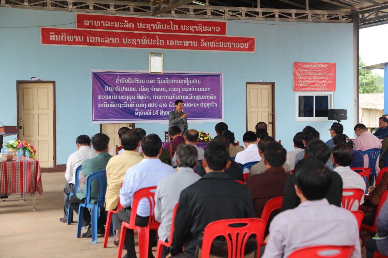 ຫຼັງຈາກຮັບຟັງລາຍງານທ່ານ ທອງ ລຸນ ສີສຸລິດ ກໍໄດ້ກ່າວຍ້ອງຍໍຊົມເຊີຍຕໍ່ໝາກຜົນສຳເລັດຂອງໂຄງການໂດຍສະເພາະແມ່ນ ທ່ານ ເກຍ ອູ໊ສິດທິເດດ ທີ່ເປັນນັກພັດທະນາດີເດັ່ນຊຶ່ງໄດ້ຍອມເສຍສະຫຼະທັງເຫື່ອແຮງ ແລະ ທຶນຮອນສ່ວນຕົວເພື່ອທຸ້ມເທເຂົ້າໃສ່ການຊ່ວຍເຫຼືອພັດທະນາຊີວິດການເປັນຢູ່ຂອງປະຊາຊົນທຸກຍາກຫາກິນແບບເລື່ອນລອຍໄດ້ຮູ້ສ້າງຢູ່ທຳມາຫາກິນ ແລະມີອາຊີບພ້ອມດຽວກັນນັ້ນອຳນາດການປົກບ້ານຕະຫຼອດຮອດພໍ່ແມ່ປະຊາຊົນພາຍໃນ 2 ບ້ານກໍໃຫ້ການຮ່ວມໃຫ້ມືໂຄງການ ຈົນສາມາດຫັນປ່ຽນຊີວິດຄອບຄົວມາສູ່ ແບບໃໝ່ມີຊື່ສຽງທາງບວກຫຼາຍຂຶ້ນ ແລະໄດ້ຮຽກຮ້ອງໃຫ້ປະຊາຊົນສືບຕໍ່ໃນການພັດທະນາຊີວິດຄອບຄົວດີຂຶ້ນກວ່າ ເກົ່າໄປເລື້ອຍໆຫຼັງຈາກນັ້ນທ່ານນາຍົກແລະຄະນະກໍໄດ້ເດີນຊົມການດຳລົງຊີວິດ ແລະບ້ານເຮືອນຂອງປະຊາຊົນ, ຕະຫຼອດຮອດພື້ນທີ່ທຳການຜະລິດກ່ອນຈະມີການປູກຕົ້ນໄມ້ໃນບ້ານດັ່ງກ່າວຕື່ມອີກ.