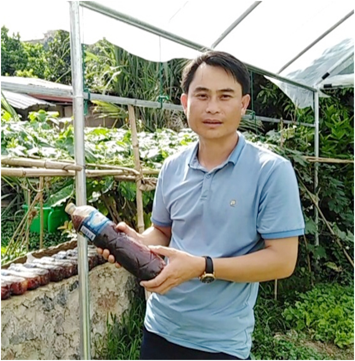 ສຳລັບຂັ້ນຕອນໃນການປູກທໍາອິດແມ່ນໄດ້ກະກຽມພື້ນທີ່,ໄຖ່ດິນຕາກແດດໄວ້ແລ້ວເອົາປູນຂາວໂຮຍໃສ່ເພື່ອຂ້າເຊື້ອຕາກແດດໄວ້ປະມານ15 ວັນ, ຫຼັງຈາກນັ້ນ, ກໍຕີແປງເປັນໜານແລ້ວກໍເອົາຝຸ່ນຄອກມາໃສ່ຮອງພື້ນ ແລະນໍາເອົາແນວພັນຫວ່ານໄດ້, ສໍາລັບການບົວລະບັດຮັກສາແມ່ນຫົດນໍ້າເຊົ້າ-ແລງ, ຈະເນັ້ນໃສ່ຝຸ່ນຄອກ, ນໍ້າສະກັດຊີວະພາບ ແລະໄດ້ຜະລິດຈຸລິນຊີສັງເຄາະແສງຊົມໃຊ້ຖືວ່າໄດ້ຮັບຜົນພໍສົມຄວນ, ຖ້າວ່າມີພະຍາດເກີດຂຶ້ນນໍາຜັກແມ່ນຈະໃຊ້ນໍ້າໝັກສະໝຸນໄພທີ່ເຮັດເອງ 7 ມື້ຈະສີດເທື່ອໜຶ່ງເພື່ອປ້ອງກັນພະຍາດແມງໄມ້, ພືດຜັກທີ່ນໍາມາປູກອັນຫຼັກໆມີ 4 ຊະນິດຄື: ຜັກກາດ, ຜັກຫົມ, ຜັກບົ່ວ ແລະຜັກບົ້ງ, ນອກຈາກນີ້ຍັງມີຜັກສະ ຫຼັດ, ຜັກຫອມລາບປູກໝູນວຽນປະສົມປະສານກັນ, ໃຊ້ເວລາປູກປະມານໜຶ່ງເດືອນໂດຍສະເພາະຫອມບົ່ວແມ່ນ 1 ເດືອນກວ່າກໍສາມາດຈຳໜ່າຍໄດ້, ສຳລັບການຂາຍລາຄາຜັກແຕ່ລະຊະນິດຈະແຕກຕ່າງກັນເຊັ່ນ: ຜັກບົ້ງ, ຜັກບົ່ວຈະໄດ້ລາຄາສູງ 25.000 ກີບຕໍ່ກິໂລສ່ວນຜັກກາດ, ຜັກຫົມລາຄາ 10 ພັນກີບຕໍ່ກິໂລໂດຍມີແມ່ຄ້າຈຳນວນໜຶ່ງມາຮັບຊື້ຢູ່ສວນ ແລະບາງເທື່ອກໍໄປຈໍາໜ່າຍເອງຢູ່ຕະຫຼາດເມືອງຊຳເໜືອ, ສະເລ່ຍລວມແລ້ວລາຍຮັບຈາກການຂາຍພືດ ຜັກໄດ້ 50 ລ້ານກີບຕໍ່ປີ.