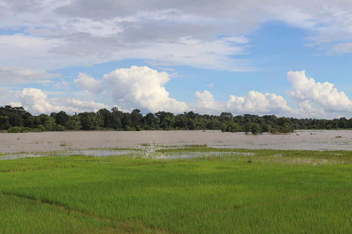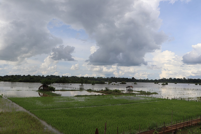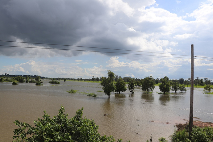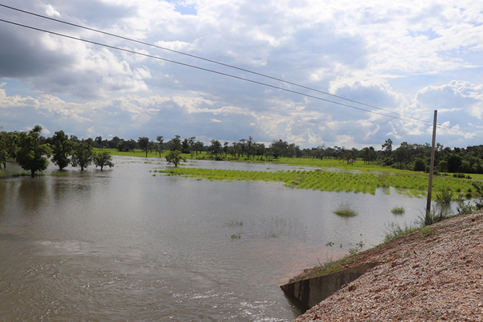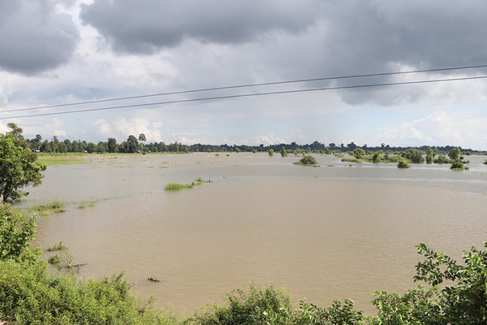 ຢ່າງໃດກໍຕາມປະຈຸບັນມີເນື້ອທີ່ນາທີ່ຂຶ້ນກັບ 10 ບ້ານພາຍໃນເມືອງຊຶ່ງປະກອບມີ: ບ້ານຫາດຄໍາຮຽງ, ຍາງຄໍາ, ນາພອກ, ສົ້ມ, ຍາງໃຫຍ່, ຕຶງ, ບຶງຫົວນາ , ດົງໝາກບ້າ ແລະ ບ້ານໜອງບອນແມ່ນຖືກນໍ້າຖ້ວມ 780 ເຮັກຕາ ຊຶ່ງເທົ່າກັບ 19,45% ຂອງຈໍານວນເນື້ອທີ່ນາທັງໝົດໃນ 10 ບ້ານ ລວມມີ 2,3 ພັນຄອບຄົວ ແລະ 730 ຄອບຄົວຖືກຜົນກະທົບຕົວຈິງ ຊຶ່ງເຂົ້າທີ່ຖືກຖ້ວມແມ່ນເປັນເຂົ້າມານສ່ວນລາຍລະອຽດຂອງຄວາມເສຍຫາຍແມ່ນຍັງຢູ່ໃນຂັ້ນຕອນການກວດກາຕົວຈິງຂອງຫ້ອງການກະສິກໍາແລະປ່າໄມ້ເມືອງ.