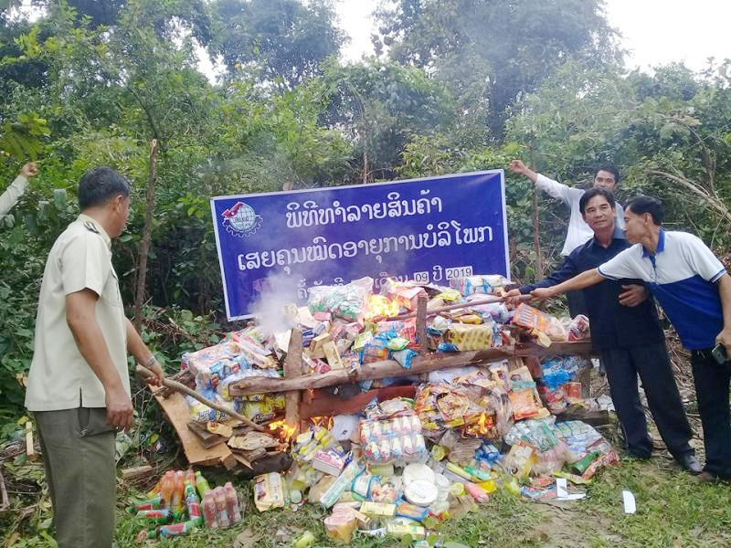 ເພື່ອເປັນການຕ້ານ ແລະສະກັດກັ້ນການຈຳໜ່າຍສິນຄ້າທີ່ໝົດອາຍຸໃນການໃຊ້ງານຂອງຜູ້ອຸປະໂພກ ແລະບໍລິໂພກໃນວັນທີ 18 ກັນຍາຜ່ານມາທີ່ກອງບັນຊາການ ປກສ ເມືອງໜອງບົກ ແຂວງຄຳມ່ວນ ໄດ້ຈັດພິທີທຳລາຍສິນຄ້າທີ່ໝົດອາຍຸໂດຍເຂົ້າຮ່ວມມີ ທ່ານ ໄພວັນ ໄຊປັນຍາ ຫົວໜ້າຫ້ອງການອຸດສາຫະກຳ ແລະ ການຄ້າເມືອງມີ ທ່ານ ບຸນມີ ຈິດຕະວົງ ຫົວໜ້າຫ້ອງການຍຸຕິທຳເມືອງຜູ້ຊີ້ນຳກຸ່ມບ້ານໃຫຍ່ໃນເທສະບານ ແລະຫ້ອງການທີ່ກ່ຽວຂ້ອງເຊັ່ນ: ປກສ, ກະສິກຳ ແລະ ປ່າໄມ້ ເມືອງນາຍບ້ານໆໜອງບົກເຂົ້າຮ່ວມຢ່າງພ້ອມພຽງ.
