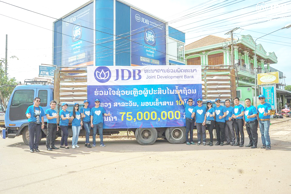 ເພື່ອເປັນສ່ວນໜື່ງໃນການປະກອບສ່ວນແບ່ງເບົາບັນເທົາທຸກໃຫ້ແກ່ປະຊາຊົນບັນດາເຜົ່າທີ່ໄດ້ຮັບຜົນກະທົບຢ່າງຮ້າຍແຮງຈາກເຫດຝົກຕົກໜັກຕິດຕໍ່ກັນຫຼາຍວັນເຮັດໃຫ້ເກີດມີນໍ້າຖ້ວມຢູ່ໃນເທສະບານນະຄອນປາກເຊ ແລະເມືອງໃກ້ຄຽງຂອງແຂວງຈຳປາສັກ ໄດ້ຮັບຜົນກະທົບຢ່າງໜັກດັ່ງນັ້ນທະນາຄານຮ່ວມພັດທະນາ ຫຼື ເຈດີບີ ຈຶ່ງໄດ້ສົ່ງນໍ້າໃຈໄປບັນເທົາທຸກປະຊາຊົນຜູ້ເດືອດຮ້ອນຍ້ອນເຫດນໍ້າຖ້ວມຄັ້ງນີ້ເປັນເຂົ້າສານຈຳນວນ 10 ໂຕນ ມູນຄ່າ 75 ລ້ານກີບ.