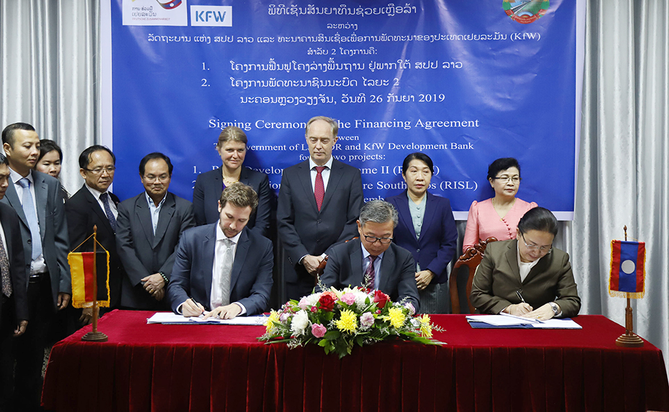 ການຊ່ວຍເຫຼືອລ້າຂອງລັດຖະບານເຢຍລະມັນສຳລັບທັງສອງໂຄງການແມ່ນ 18 ລ້ານເອີໂຣ ແລະລັດຖະບານລາວຈະໄດ້ປະກອບສ່ວນສົມທົບເປັນເງິນທັງໝົດ 9 ແສນເອີໂຣ, ສຳລັບໂຄງການພັດ ທະນາຊົນນະບົດໄລຍະ II (RDP) ແລະໂຄງການຟື້ນຟູພື້ນຖານໂຄງລ່າງຢູ່ພາກ ໃຕ້ຂອງລາວ (RISL) ຄາດວ່າຈະເລີ່ມ ໂຄງການໃນໄຕມາດສຸດທ້າຍຂອງປີ 2019 ແລະ ຈະໃຫ້ສຳເລັດໃນປີ 2022 ເພື່ອຟື້ນຟູ ແລະ ປັບປຸງເສັ້ນທາງຊົນນະບົດ, ຂົວຂ້າມນໍ້າ ແລະ ພື້ນຖານໂຄງລ່າງອື່ນໆຢູ່ເມືອງໄຊບົວທອງ, ເມືອງບົວລະ ພາແຂວງຄຳມ່ວນ ແລະຫຼາຍເມືອງໃນ ແຂວງພາກໃຕ້ຂອງລາວ, ໂດຍສະເພາະແມ່ນເມືອງສະໜາມໄຊ ແຂວງອັດຕະປື.
