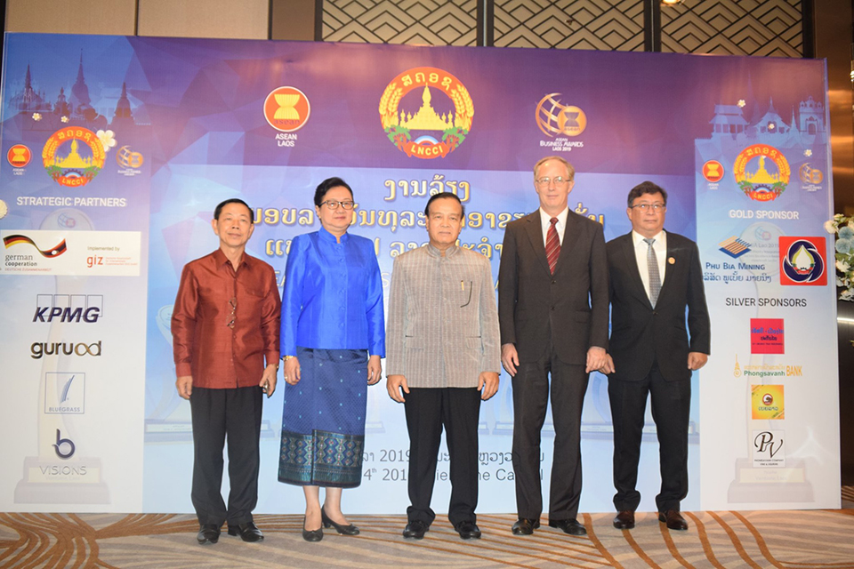 ວັນທີ 4 ຕຸລາຜ່ານມາທີ່ນະຄອນຫຼວງວຽງຈັນ ສະພາການຄ້າ ແລະອຸດສາຫະກຳແຫ່ງຊາດລາວໄດ້ຈັດງານລ້ຽງມອບລາງວັນທຸລະກິດອາຊຽນດີເດັ່ນຂອງ ສປປ ລາວ ປະຈຳປີ 2019 ໂດຍໃຫ້ກຽດເຂົ້າຮ່ວມຂອງທ່ານ ສົມດີ ດວງດີ ຮອງນາຍົກລັດຖະມົນຕີ, ລັດຖະມົນຕີກະຊວງການເງິນ, ທ່ານນາງ ເຂັມມະນີ ພົນເສນາ ລັດຖະມົນ ຕີ ກະຊວງອຸດສາຫະກຳ ແລະການຄ້າ, ທ່ານ ທະນົງສິນ ກັນລະຍາ ຮອງປະທານສະພາການຄ້າ ແລະອຸດສາຫະກຳແຫ່ງຊາດລາວພ້ອມດ້ວຍບັນດານັກທຸລະກິດແລະ ພາກສ່ວນທີ່ກ່ຽວຂ້ອງເຂົ້າຮ່ວມ.