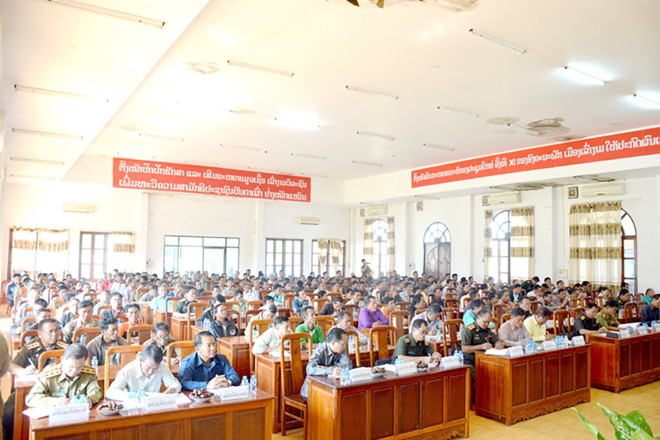 ທ່ານ ວາດສະໜາ ວົງວັນດີ ຫົວໜ້າໜ່ວຍງານສັງລວມວຽກງານສອງກຳລັງ ປກຊ-ປກສ ຂອງເມືອງກໍ່ໄດ້ຜ່ານບົດສະຫຼຸບລາຍ ງານການຈັດຕັ້ງເຄື່ອນໄຫວ, ພ້ອມ ທັງວາງທິດທາງແຜນການໃນຕໍ່ ໜ້າ, ເມືອງເລົ່າງາມປະກອບມີ 8 ກຸ່ມ, ມີ 97 ບ້ານ ແລະມີ 13,4 ພັນຫຼັງຄາເຮືອນ ແລະ 15,6 ພັນຄອບຄົວ, ຜ່ານການຈັດຕັ້ງປະຕິບັດ ໃນໄລຍະ 2 ປີຜ່ານມາເຫັນໄດ້ວ່າ ເປັນຂະບວນກວ້າງຂວາງ ແລະຕໍ່ ເນື່ອງດີເຮັດໃຫ້ບັນດານິຕິກຳ ແລະເອກະສານຕ່າງໆທີ່ກ່ຽວພັນ ກັບການສ້າງຄັງແຮໂດຍສະເພາະ ກໍ່ແມ່ນດຳລັດເລກທີ 093 ຂອງນາຍົກລັດຖະມົນຕີແຫ່ງ ສປປ ລາວ ແລະຂໍຕົກລົງເລກທີ 17 ຂອງປະທານປ້ອງກັນຊາດ-ປ້ອງກັນຄວາມສະຫງົບແຂວງ