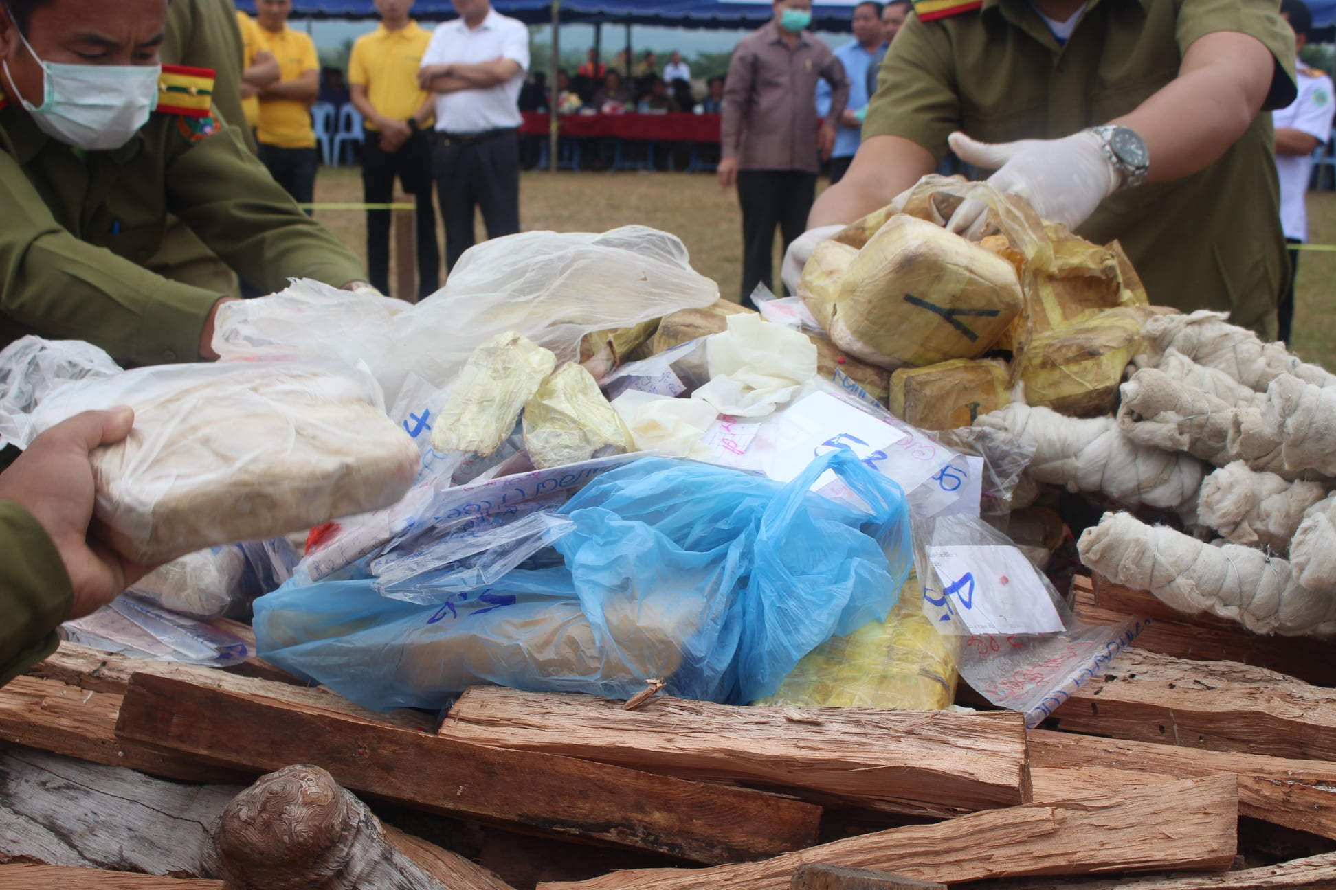 ທີ່ແຂວງບໍ່ແກ້ວຈັດຂຶ້ນໃນວັນທີ 10 ຕຸລາ ໃນນີ້ມີປະເພດຢາບ້າຈໍານວນ 13,1 ລ້ານເມັດ, ໜັກ 1.313,8 ກິໂລກຣາມ, ເຮໂລອິນຈໍານວນ 58 ແທ່ງ, ໜັກ 23,2 ກິໂລກຣາມ, ຢາໄອຈໍານວນ 1.654 ຫໍ່, ໜັກ 1,6 ພັນກິໂລກຣາມ ແລະແປ້ງຝຸ່ນ 14 ເປົ໋າ, ໜັກ 350 ກິໂລ.