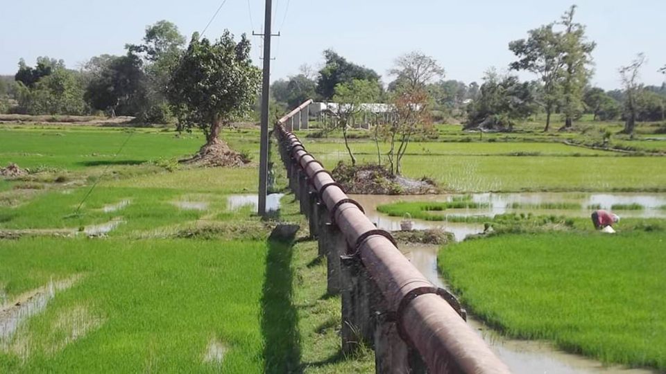 ສ່ວນດ້ານວຽກງານກະສິກຳໂດຍການຜະລິດເຂົ້າໃນປີ 2019 ມີເນື້ອທີ່ນາປີ 15.888 ເຮັກຕາ ໃນນີ້ເສຍຫາຍຈາກນໍ້າຖ້ວມ 5.345 ເຮັກຕາ, ເນື້ອທີ່ເກັບກ່ຽວ 10.543 ເຮັກຕາ ຜົນຜະລິດ 41.118 ໂຕນ, ເນື້ອທີ່ນາແຊງ 2.961 ເຮັກຕາ ຜົນຜະລິດ 16.522 ໂຕນ ລວມຜົນຜະລິດທັງສອງລະດູ 57.640 ໂຕ່ນ, ສະເລ່ຍໃສ່ຫົວຄົນໄດ້ 1.088 ກິໂລຕໍ່ຄົນຕໍ່ປີ, ການຜະລິດເປັນ ສິນຄ້າໃນທົ່ວເມືອງມີ 28 ກຸ່ມມີກຸ່ມຜະລິດເເນວພັນເຂົ້າ 4 ກຸ່ມ ໃນປີ 2019 ຜະລິດແນວພັນໄດ້ 17.781 ໂຕນ ທຽບໃສ່ແຜນການເພີ່ມຂຶ້ນ 13,5%, ມີຄອບຄົວ ຕົວແບບໃນການປູກຝັງ-ລ້ຽງສັດຈຳນວນ 31 ຄອບຄົວ ແລະ ພົ້ນເດັ່ນແມ່ນຄອບຄົວທ່ານ ສີຮອງ ໂຄດຕະວົງຫົວໜ້າກຸ່ມຂະຫຍາຍແນວພັນເຂົ້າບ້ານຜັກອີ່ຕູ່ໄດ້ຮັບຫຼຽນຊາວນາດີເດັ່ນອາຊຽນໃນປີ 2017 ຊຶ່ງເປັນຄົນທຳອິດໃນ ສປປ ລາວ.