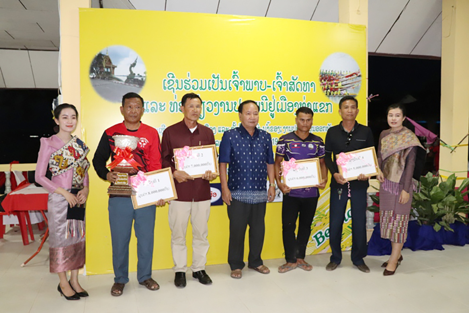 ມາຈາກບ້ານປຸງ ເໜືອ ເມືອງຫີນບູນ ໄດ້ຮັບລາງ ວັນເງິນສົດ 10 ລ້ານກີບ ພ້ອມຂັນ ເງິນ 1 ໜ່ວຍ, ອັນດັບ 2 ເຮືອຄຸດທອງຄຳຈາກບ້ານປາກເປັ່ງເມືອງທ່າແຂກ ໄດ້ຮັບເງິນສົດ 8 ລ້ານກີບ, ອັນດັບ 3 ເຮືອເທບສິຣິ ພອນ ບ້ານດອນໃຫຍ່ ເມືອງທ່າແຂກໄດ້ຮັບເງິນສົດ 7 ລ້ານກີບ, ອັນດັບ 4 ເຮືອເຈົ້າພໍ່ຣາດສະວົງ ຈາກບ້ານມ່ວງສຸມ ເມືອງທ່າແຂກ ໄດ້ຮັບເງິນສົດ 6 ລ້ານກີບ,ປະເພດເຮືອກາງອັນດັບທີ 1 ໄດ້ແກ່:ເຮືອ20ມັງກອນມາຈາກກອງບັນຊາການ ປກຊ ແຂວງໄດ້ຮັບ ລາງວັນເງິນສົດ 8 ລ້ານກີບ ພ້ອມຂັນ 1 ໜ່ວຍ, ອັນດັບ 2 ເຮືອລູກດອກຟ້າຈາກບ້ານປຸງເໜືອ ເມືອງຫີນບູນໄດ້ຮັບເງິນສົດ 7 ລ້ານກີບ, ອັນດັບ 3 ເຮືອເທບພະບຸດ ໂພສີຈາກບ້ານເວີນ ເມືອງທ່າ ແຂກ ໄດ້ຮັບເງິນສົດ 6 ລ້ານກີບ, ອັນດັບ 4 ເຮືອ ນາງ ຄຳໄຫຼ ຈາກ ບ້ານນາເມືອງ ໄດ້ຮັບເງິນສົດ 5 ລ້ານກີບ.