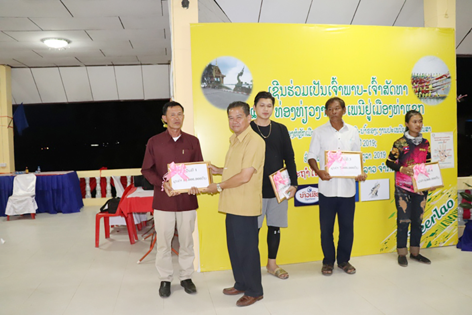 ທ່ານ ຈັນ ບຸບຜາລີວັນ ເຈົ້າ ເມືອງທ່າແຂກ, ຮອງປະທານຈັດ ງານບຸນໄດ້ລາຍງານຜົນສໍາເລັດ ຂອງການຈັດງານບຸນອອກພັນສາ ແລະຊ່ວງເຮືອປະຈໍາປີ 2019 ວ່າ: ໃນປີນີ້ມີເຮືອເຂົ້າຮ່ວມແຂ່ງ ຂັນທັງໝົດ 32 ລຳ, ໃນນີ້ເຮືອໃຫຍ່ປະເພດ 55 ສີພາຍມີ 5 ລໍາ, ເຮືອ ປະເພດ 35 ສີພາຍມີ 9 ລໍາ ແລະ ເຮືອປະເພດ 12 ສີພາຍມີ 18 ລໍາ ແລະເຮືອຊ່ວງມິດຕະພາບຈາກ ແຂວງນະຄອນພະນົມ 8 ລໍາ, ຜ່ານ ການແຂ່ງຂັນເຮືອປະເພນີປະເພດ ເຮືອໃຫຍ່ອັນດັບທີ 1 ໄດ້ແກ່: ເຮືອ ເຈົ້າແມ່ດອກຟ້າ