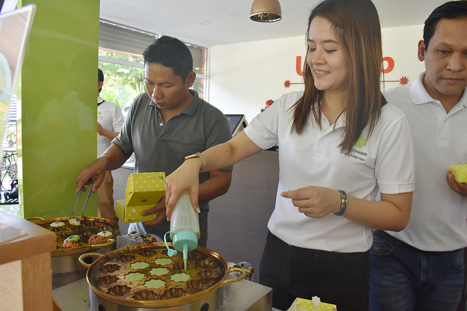 ເຂົ້າໜົມຫວານໄທທ່າຊ້າງ ຫຼືເຂົ້າໜົມຄົກທ່າຊ້າງສູດວີແກນຊຶ່ງເປັນນະວັດຕະກໍາອາຫານເພື່ອສຸຂະພາບທັງເປັນຜະລິດຕະພັນເຂົ້າໜົມຊື່ດັງຂອງເມືອງໄທໄດ້ຂະຫຍາຍສາຂາມາລາວ, ຊຶ່ງມີພິທີຖະແຫຼງຂ່າວເປີດສາຂາໃໝ່ຂຶ້ນໃນວັນທີ 14 ຕຸລາ 2019 ທີ່ມະຫາວິທະຍາໄລແຫ່ງຊາດໂດຍມີ ທ່ານ ຂວັນປະຊາ ທອງວິປູສະນະ ເຈົ້າຂອງຮ້ານເຂົ້າໜົມຫວານໄທທ່າຊ້າງ, ທ່ານ ອາທິດພັດ ນິພິດຖາພັດ ຜູ້ສ້າງຕັ້ງເຂົ້າໜົມຫວານໄທທ່າຊ້າງ ແລະພາກສ່ວນກ່ຽວຂ້ອງເຂົ້າຮ່ວມ.