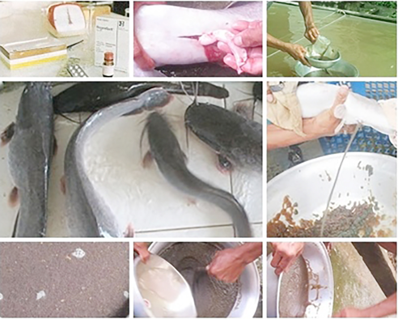 ສໍາລັບຂັ້ນຕອນການປະສົມຢາແມ່ນນໍາເອົາຢາໂມຕິລຽມ 1 ເມັດໃສ່ລົງໃນຄົກ (ຢາໂມຕິລຽມ 1 ເມັດ ສາມາດໃຊ້ກັບປາ 2 ໂຕ) ຕໍາໃຫ້ລະອຽດແລະກຽມສານລະລາຍ ຫຼື ນໍ້າກັ່ນ 1 ມິນລີລິດ ຫຼັງຈາກນັ້ນມາປະສົມເຂົ້າກັນເປັນນໍ້າຢາຊູພລີເຟັກ; ກຽມຢາຊູພລີເຟັກ 1 ມິນລີລິດ ແລ້ວເຈືອຈາງຢາຊູພລີເຟັກຈໍານວນດັ່ງກ່າວດ້ວຍສານລະ ລາຍ ຫຼືນໍ້າກັ່ນ 99 ມິນລີລິດ ຈາກນັ້ນໃຊ້ເຂັມສັກຢາດູດເອົານໍ້າຢາທີ່ປະສົມໄວ້ແລ້ວກໍເອົາປາທີ່ພ້ອມປະສົມພັນຂຶ້ນມາສັກ.
