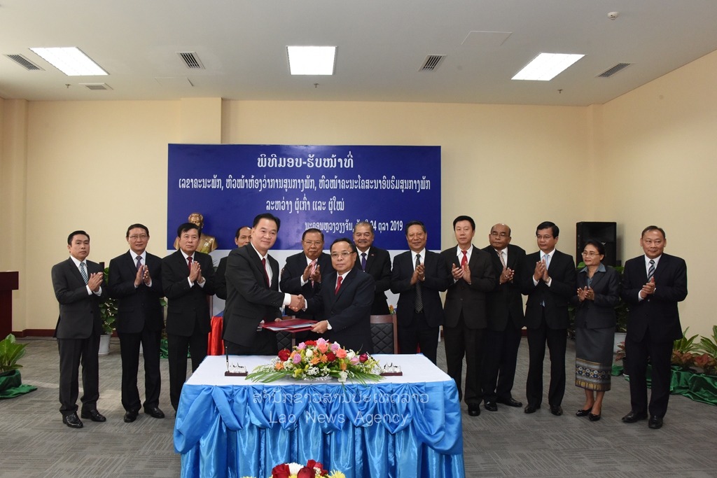 ຂ່າວ: ຂປລ, ໃນວັນທີ 24 ຕຸລາ 2019 ໄດ້ມີພິທີເຊັນບົດບັນທຶກມອບ-ຮັບໜ້າທີ່ລະຫວ່າງທ່ານ ຄຳພັນ ພົມມະທັດຫົວໜ້າຫ້ອງວ່າການສູນກາງພັກຄົນເກົ່າໄປເປັນຫົວໜ້າຄະນະໂຄສະນາອົບຮົມສູນກາງພັກຄົນໃໝ່, ຍ້າຍທ່ານ ກິແກ້ວ ໄຂຄຳພິທູນ ເລຂາຄະນະບໍລິຫານງານພັກ, ຫົວໜ້າຄະນະໂຄສະນາອົບຮົມສູນກາງພັກຜູ້ເກົ່າໄປຮັບໜ້າທີ່ໃໝ່ ແລະຍ້າຍທ່ານ ທອງສະລິດ ມັງໜໍ່ເມກ ມາເປັນຫົວໜ້າຫ້ອງວ່າການສູນກາງພັກຄົນໃໝ່,ໂດຍໃຫ້ກຽດເຂົ້າຮ່ວມເປັນສັກຂີພິຍານຂອງ ທ່ານ ບຸນຍັງວໍລະຈິດ ປະທານປະເທດພ້ອມດ້ວຍພາກສ່ວນກ່ຽວຂ້ອງເຂົ້າຮ່ວມເປັນສັກຂີພິຍານ.