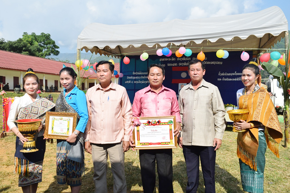 ໃນພິທີໄດ້ມີການມອບໃບຢັ້ງຢືນບ້ານນາໄຊສະຫ່ວາງ ເປັນບ້ານແມ່ຍິງ 3 ດີ,ບ້ານສາທາລະນາສຸກ ແລະບ້ານວັດທະນະທໍາຊຶ່ງມອບໂດຍເຈົ້າເມືອງລ້ອງແຈ້ງ,ໂອກາດດັ່ງກ່າວຮອງເຈົ້າແຂວງໄຊສົມບູນ ໄດ້ມີຄໍາເຫັນໂອ້ລົມໂດຍຍົກໃຫ້ເຫັນເຖິງຄວາມໝາຍ-ຄວາມສໍາ ຄັນຂອງວຽກງານສ້າງຄົນ, ສ້າງ ຄອບຄົວ ແລະສ້າງບ້ານໃຫ້ກາຍ ເປັນບ້ານວັດທະນະທໍາ, ທັງໄດ້ຮຽກຮ້ອງໃຫ້ທຸກພາກສ່ວນທີ່ກ່ຽວຂ້ອງເປັນຕົ້ນແມ່ນອໍານາດການປົກຄອງບ້ານຕະຫຼອດຮອດພໍ່ແມ່ປະຊາຊົນພາຍໃນບ້ານຈົ່ງພ້ອມກັນປົກປັກຮັກສາມູນເຊື້ອວັດທະນະທໍາໃຫ້ຢູ່ຄຽງຄູ່ກັບບ້ານນາໄຊສະຫວ່າງຕະຫຼອດໄປເພື່ອໃຫ້ສາມາດກາຍເປັນບ້ານພັດທະນາໃນອະນາຄົດ,ຈາກນັ້ນ, ໄດ້ມີພິທີລັ່ນຄ້ອງ 9 ບາດ ແລະເປີດປ້າຍບ້ານນາໄຊສະຫວ່າງເປັນບ້ານວັດທະນະທໍາຢ່າງເປັນທາງການ.