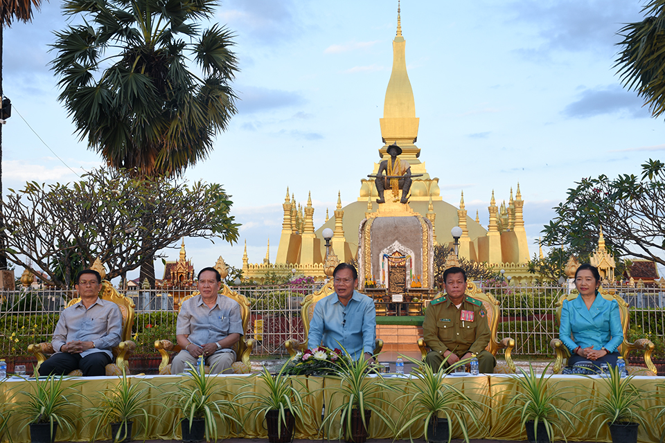 ພິທີຖະແຫຼງຂ່າວການຈັດງານບຸນນະມັດສະການພະທາດຫຼວງວຽງຈັນ (ນວ) ແລະງານວາງສະແດງສິນຄ້າປະຈໍາປີ 2019 ໄດ້ຈັດຂຶ້ນທີ່ເດີ່ນພະທາດຫຼວງວຽງຈັນ, ໃນວັນທີ 29 ຕຸລາ 2019, ໂດຍການຖະແຫຼງຂອງທ່ານ ສີຫຸນ ສິດທິລືໄຊ ຮອງເຈົ້າຄອງນະຄອນຫຼວງວຽງຈັນ, ມີທ່ານ ບຸນທ່ຽງ ຂຸນສີ ປະທານແນວລາວສ້າງຊາດ ນວ, ທ່ານ ພົ.ວ ບຸບຜາ ສີພົມມາ ຫົວໜ້າກອງບັນຊາການ ປກສ ນວ, ທ່ານ ເບີລິນ ເພັດຈັນທະລາດ ຫົວໜ້າພະແນກອຸດສາຫະກໍາ ແລະ ການຄ້າ ນວ ແລະ ທ່ານ ນາງ ວິໄລວອນ ຈັນທະລາຕີ ຫົວໜ້າພະແນກຖະແຫຼງຂ່າວ, ວັດທະນະທໍາ ແລະທ່ອງທ່ຽວ ນວ, ພ້ອມ ພະນັກງານກ່ຽວຂ້ອງເຂົ້າຮ່ວມ.