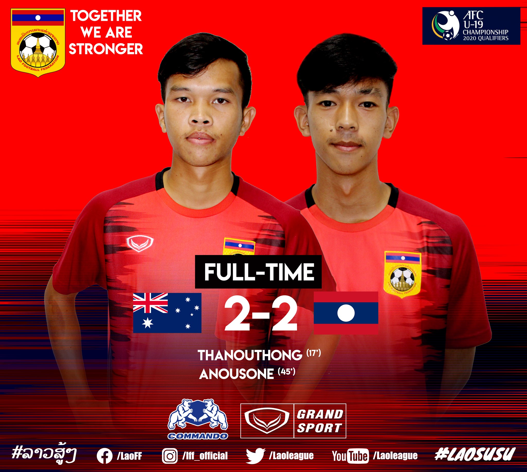 ໂດຍກຸ່ມ H ຫຼື AFC U-19 CHAMPIONSHIP 2020, Qualifiers ຜ່ານການແຂ່ງຂັນ ຜົນປະກົດວ່າ: ທີມຊາດລາວສະເໝີທີມຊາດອົດສະຕຣາລີ 2-2 ໂດຍທີມຊາດລາວໄດ້ປະຕູຂຶ້ນນຳໄປກ່ອນ 2 ປະຕູໃນເຄິ່ງເວລາທຳອິດຈາກ 2 ນັກເຕະລູກຫຼານຊາວ ແຂວງຄຳມ່ວນ ທະນູທອງກຽດນະລົງລົບ ນາທີ 15 ແລະອານຸ ສອນ ໄຊປັນຍາ ນາທີ 44 ສ່ວນໃນເຄິ່ງທີ 2 ທີມຊາດອົດສະຕຣາລີ ສາມາດຕີສະເໝີໄດ້ 2 ປະຕູຈາກ RUIZ DIAZ ນາທີ 64 ແລະ CARLUCCIO ນາທີ 78 ຈົບເກມການແຂ່ງຂັນສະເໝີກັນ 2-2 ແບ່ງກັນທີມລະ 1 ຄະແນນ, ສ່ວນ ອີກຄູ່ ໄຕ້ຫວັນ ເຈົ້າພາບ ຊະນະ ມາເກົາ ຂາດລອຍ 8-0, ສຳລັບ ລາຍຊື່ນັກກີລາທີລົງສະໝາມຂອງ ທີມຊາດລາວມີຄື: ຜູ້ຮັກສາປະຕູສໍລະສັກ ທີລະວົງ, ກອງຫຼັງ ຄຳສະຫງ່າ ພິມມະສອນ, ຊີດີພົມສະ ຫວັນ, ອານັນຕະຊາ ສີພົງພັນ, ນາລົງສິດ ຈັນທະລັງສີ (ພຸດທະວົງ ສັງວິໄລ ນາທີ 86) ກອງກາງ ອານຸສອນ ໄຊປັນຍາ (ພູວຽງ ພູມສະຫວັດ ນາທີ 64), ບຸນມີ ປິ່ນແກ້ວ, ອາລຸນໄນ ລຸນລາສີ, ໂຈນີ ແຫວນປະເສີດ, ທະນູທອງ ກຽດນະລົງລົບ, ກອງໜ້າຕີ ສີຫາລາດ (ສົງການ ສີຈັນທະວົງ ນາທີ 89).