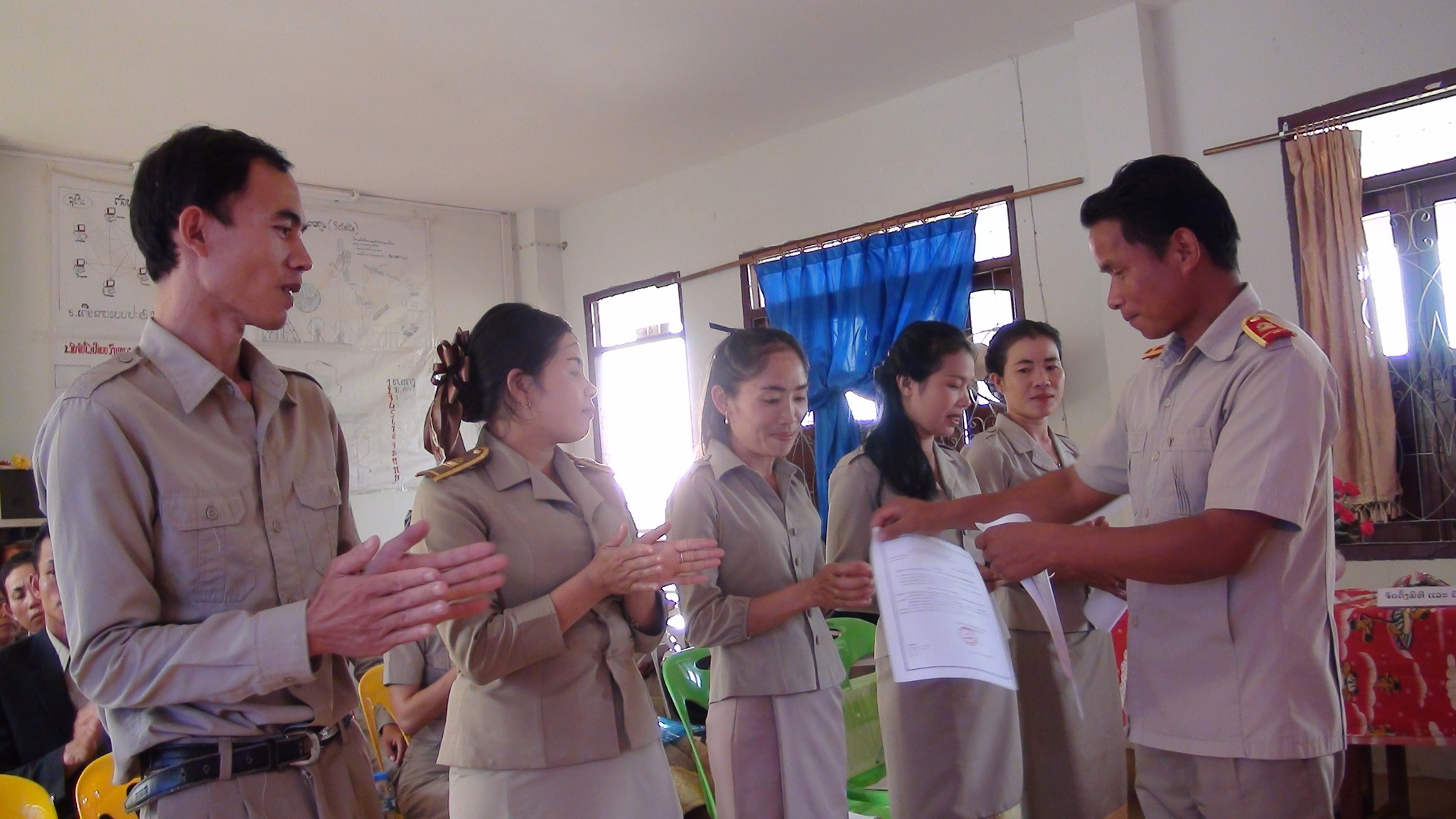 ທ່ານ ນາງ ກອງສີ ເພັດສະລາດ ຮອງເລຂາໜ່ວຍພັກໂຮງຮຽນ ມສ ທ່າແຕງ ໄດ້ກ່າວວ່າ:ການຮັບເອົາສະມາຊິກພັກສໍາຮອງຈໍານວນ 5 ສະຫາຍ, ຍິງ 4 ສະຫາຍ ຕາມຂໍ້ຕົກລົງຂອງຄະນະປະຈຳພັກເມືອງທ່າແຕງວ່າດ້ວຍການອະນຸມັດເລື່ອນສະມາຊິກພັກສຳຮອງຂຶ້ນເປັນສະມາຊິກພັກສົມບູນ,ໂດຍອີງໃສ່ກົດລະບຽບຂອງພັກປະຊາ ຊົນປະຕິວັດລາວ,ດັ່ງນັ້ນ ຄະນະປະຈຳພັກເມືອງທ່າແຕງຕົກລົງເຫັນດີອະນຸມັດເລື່ອນສະມາຊິກພັກສຳຮອງ 5 ສະຫາຍດັ່ງກ່າວຂຶ້ນເປັນສະມາຊິກພັກສົມບູນທີ່ສັງກັດຢູ່ໜ່ວຍພັກໂຮງຮຽນມສ ທ່າແຕງເຂົ້າເປັນສະມາຊິກພັກປະຊາຊົນປະຕິວັດລາວຊຶ່ງທຸກສະຫາຍໄດ້ຜ່ານການຝຶກຝົນຫຼໍ່ຫຼອມຕົນເອງ ແລະປະຕິບັດໜ້າທີ່ວຽກງານທີ່ພັກ-ລັດກໍ່ຄືຂັ້ນເທິງມອບໝາຍໃຫ້ເປັນໄລຍະ 12 ເດືອນ ຕາມລະບຽບຂອງພັກປະຊາຊົນປະຕິວັດລາວວາງອອກຢ່າງເຂັ້ມງວດ, ໃນຂະນະດຽວກັນຮັບເອົາມະຫາຊົນກ້າວ ໜ້າ 6 ສະຫາຍ, ຍິງ 4 ສະຫາຍ ເຂົ້າເປັນສະມາຊິກພັກສໍາຮອງຕື່ມອີກ.