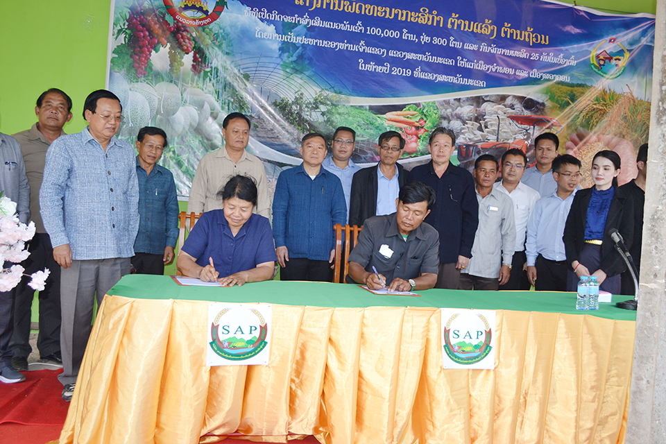 ພິທີເຊັນສັນຍາຮ່ວມມືພັດທະນາກະສິກໍາຕ້ານແລ້ງ-ຕ້ານຖ້ວມ ໄດ້ຈັດຂຶ້ນໃນ ວັນທີ 5 ພະຈິກຜ່ານມາ ທີ່ຫ້ອງການ ບໍລິຫານກອງ ທຶນສາມັກຄີແນວລາວສ້າງ ຊາດບ້ານດົງຄໍາໝື່ນລະຫວ່າງ ທ່ານນາງ ພູດາໄລ ລັດວິ ໄລວົງ ຜູ້ອໍານວຍການບໍ ລິສັດສະຫວັນສົ່ງເສີມການການຜະລິດເປັນສິນຄ້າຈໍາກັດຜູ້ດຽວກັບ ທ່ານ ພູມາລາ ອິນສີຊຽງໃໝ່ຮອງນາຍບ້ານດົງຄໍາໝື່ນ ທັງເປັນປະທານກອງທຶນສາມັກຄີແນວລາວສ້າງຊາດບ້ານໂດຍການເຂົ້າຮ່ວມເປັນສັກຂີພິຍານຂອງ ທ່ານ ສັນຕິພາບ ພົມວິຫານເຈົ້າແຂວງສະຫວັນນະເຂດ, ທ່ານອ໋ອດ ພົງສະຫວັນ ຮອງຫົວໜ້າຄະນະທີ່ປຶກສາກຸ່ມທະນາຄານພົງສະຫວັນ ແລະເປັນຜູ້ຮ່ວມງານດ້ານເສດຖະກິດ-ກົດໝາຍ, ທ່ານ ຄໍາລຸຍ ຍາດຕິວົງ ເຈົ້າເມືອງຈໍາພອນ ພ້ອມນີ້ກໍ່ມີພະແນກກະສິກໍາ ແລະປ່າໄມ້ແຂວງ, ແນວລາວສ້າງຊາດແຂວງ, ອໍານາດການປົກຄອງທ້ອງຖິ່ນ, ກຸ່ມການຜະລິດ ເຂົ້າ ຮ່ວມ.