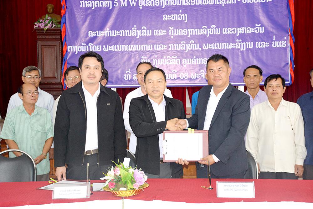 ພິທີເຊັນບົດບັນທຶກຄວາມເຂົ້າໃຈ ( MOU) ເພື່ອສຶກສາຄວາມເປັນໄປໄດ້ໂຄງການກໍ່ສ້າງພັດທະນາພະລັງງານໄຟຟ້າແສງຕາເວັນກຳລັງຕິດຕັ້ງ 5 MW, ຢູ່ເຂດອ່າງເກັບນໍ້າເຂື່ອນໄຟຟ້າເຊເສັດ-ຫ້ວຍເປາະພິທີດັ່ງກ່າວໄດ້ຈັດຂຶ້ນໃນວັນທີ 8 ພະຈິກ 2019 ທີ່ຫ້ອງປະຊຸມພະແນກແຜນການ ແລະ ການລົງທຶນແຂວງ, ໂດຍການເປັນກຽດເຂົ້າຮ່ວມຂອງທ່ານ ວິຊຽນ ນະວິກຸນ ຮອງເຈົ້າແຂວງສາລະວັນຜູ້ຊີ້ນຳວຽກງານຂົງເຂດເສດຖະກິດຂັ້ນແຂວງ, ມີບັນດາທ່ານຫົວໜ້າພະແນກ-ຮອງພະແນກການຕ່າງໆທີ່ກ່ຽວຂ້ອງ, ພ້ອມດ້ວຍທ່ານຮອງເຈົ້າເມືອງໆເລົ່າງາມ ແລະຄະນະກຳມະການຄຸ້ມຄອງການລົງທຶນຂັ້ນແຂວງ, ພະນັກງານວິຊາການເຂົ້າຮ່ວມ.