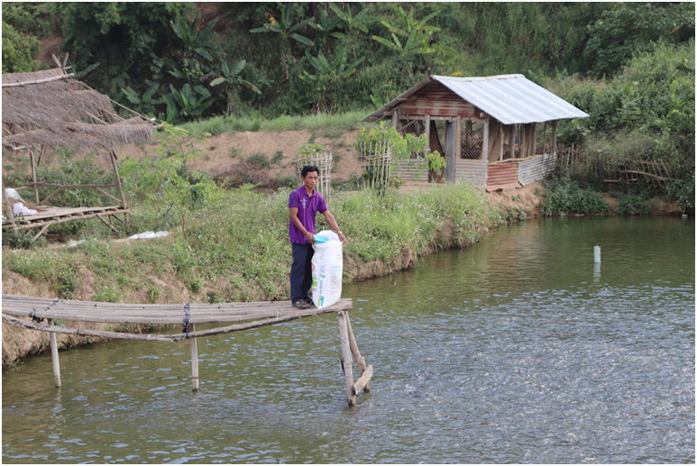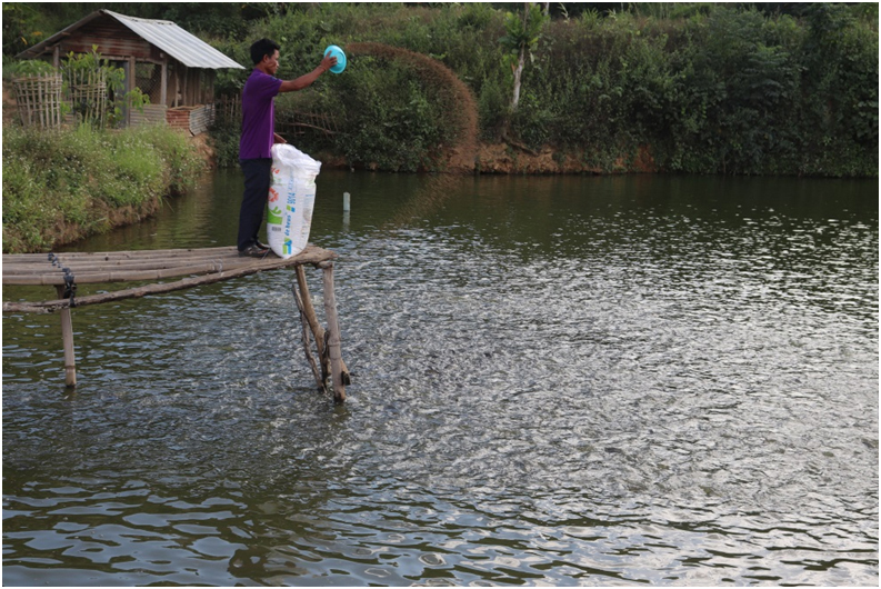 ການລ້ຽງປາໃນໜອງຂາຍນີ້ທຳອິດແມ່ນຍັງບໍ່ທັນມີປະສົບການເທື່ອລ້ຽງປີທຳອີກຍັງບໍ່ທັນໄດ້ຂາຍມາຮອດປີທີສອງຈຶ່ງໄດ້ເອົາປາອອກໄປຂາຍ, ໄດ້ເງິນປະມານ 30 ລ້ານກີບ ເຫັນວ່າມັນມີລາຍໄດ້ເຂົ້າ ຄອບຄົວດີ ຈຶ່ງໄດ້ຂະຫຍາຍໜອງ ຕື່ມອີກ ແລະກໍໄດ້ເອົາປາມາປ່ອຍ 20 ພັນໂຕ, ໃນການເອົາປານ້ອຍ ມາປ່ອຍລົງໃນໜອງ, ການໃຫ້ອາ ຫານປານ້ອຍ ທໍາອິດຕ້ອງໄປຊື້ຫົວ ອາຫານຝຸ່ນມາເກືອປາກ່ອນປະ ມານໜຶ່ງເປົ໋າ ຫຼືສອງເປົ໋າອີງຕາມ ປາມີນ້ອຍມີຫຼາຍ, ເມື່ອປາໃຫຍ່ ຂຶ້ນມາໄລຍະໜຶ່ງກໍໄດ້ນໍາເອົາຫົວ ອາຫານນ້ໍາເບີ 1 ມາເກືອເມື່ອໃຫຍ່ຂຶ້ນມາອີກເຮົາກໍຊື້ນ້ຳເບີ 2 ຈົນເຖິງເບີ 5, ເມື່ອປາໃຫຍ່ໄດ້ປະມານ 2 ໂຕຕໍ່ໂລຫາ 3 ໂຕຕໍ່ໂລ ເຮົາກໍສາມາດນຳອອກມາຈຳໜ່າຍໄດ້, ການຂາຍແມ່ນລາຄາຂາຍສົ່ງກິໂລລະ 18 ພັນກີບ ຂາຍຍ່ອຍແມ່ນກິໂລລະ 20 ພັນກີບ.