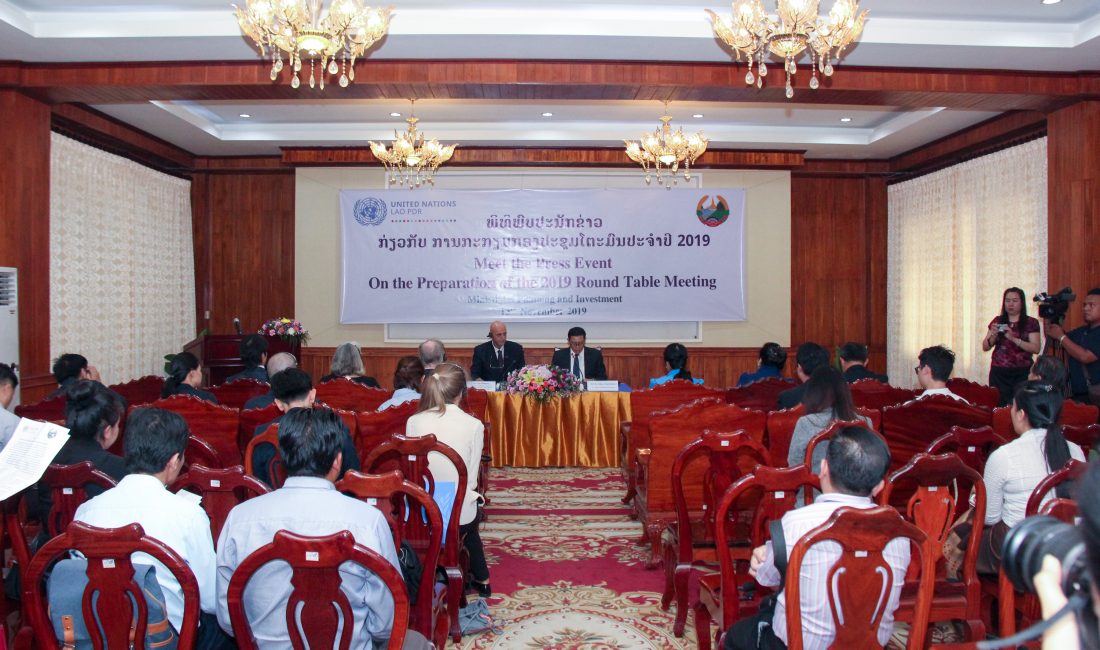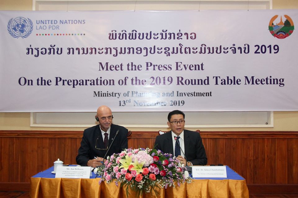 ວັນທີ 13 ພະຈິກ 2019 ທີ່ນະຄອນຫຼວງວຽງຈັນ ກະຊວງແຜນການ ແລະການລົງທຶນ, ລັດຖະບານລາວ ແລະອົງການສະຫະປະຊາຊາດເພື່ອການພັດທະນາໄດ້ຈັດພິທີພົບປະກັບສື່ມວນຊົນເພື່ອກຽມຈັດກອງປະຊຸມໂຕະ 2019 ຂຶ້ນໃນລະຫວ່າງວັນທີ 25-26 ພະຈິກ ທີ່ຈະມາເຖິງນີ້ທີ່ນະຄອນຫຼວງພະບາງ ແຂວງຫຼວງພະບາງ ໂດຍການ ເປັນປະທານຂອງທ່ານ ກິແກ້ວ ຈັນທະບູຣີ ຮອງລັດຖະມົນຕີກະຊວງແຜນການ ແລະ ການລົງທຶນ, ທ່ານ Jan Delbaere ຮັກສາການຜູ້ປະສານງານອົງການສະຫະປະຊາຊາດທັງເປັນຫົວໜ້າອົງການ ອາຫານໂລກ ປະຈໍາ ສປປ ລາວ ພ້ອມດ້ວຍແຂກຖືກເຊີນເຂົ້າຮ່ວມ.