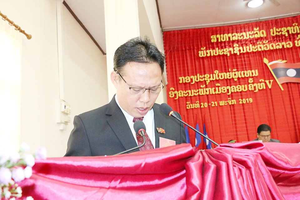 ສະຫາຍແພງຊ້ອຍ ແພງເມືອງ ກ່າວວ່າ: ກອງປະຊຸມຄັ້ງນີ້ຈະໄດ້ພ້ອມກັນທົບທວນຕີລາຄືນຜົນງານ ແລະ ໄຊຊະນະທີ່ຍາດມາໄດ້, ຈຸດອ່ອນຂໍ້ຄົງຄ້າງ ແລະ ສະຫຼຸບຖອດຖອນບົດຮຽນໃນການຈັດຕັ້ງປະຕິບັດແນວທາງນະໂຍບາຍຂອງພັກ ແລະ ມະຕິຜູ້ແທນອົງຄະນະພັກຄັ້ງທີ IV ໃນ 5 ປີຜ່ານມາ, ພ້ອມທັງກໍານົດທິດທາງຄາດ ໝາຍຍຸດທະສາດແຕ່ລະດ້ານໃນການປົກປັກຮັກສາ ແລະ ພັດທະນາເມືອງຄອບແຕ່ນີ້ຮອດປີ 2024, ກອງປະຊຸມຍັງຈະໄດ້ພ້ອມກັນຄົ້ນຄວ້າ ແລະ ຮັບຮອງເອົາບັນດາເອກະສານສຳຄັນທີ່ເປັນຍຸດທະສາດຂອງຄະນະບໍລິຫານງານພັກຄັ້ງທີ V, ຄັດເລືອກເອົາຄະນະບໍລິຫານງານພັກເມືອງຊຸດໃໝ່ເພື່ອສືບຕໍ່ຊີ້ນໍາໆພາເມືອງຄອບກ້າວຂຶ້ນຢ່າງບໍ່ຢຸດຢັ້ງດ້ວຍຜົນງານ ແລະ ຊະນະໃໝ່ຍິ່ງໃຫຍ່ກວ່າເກົ່າ.