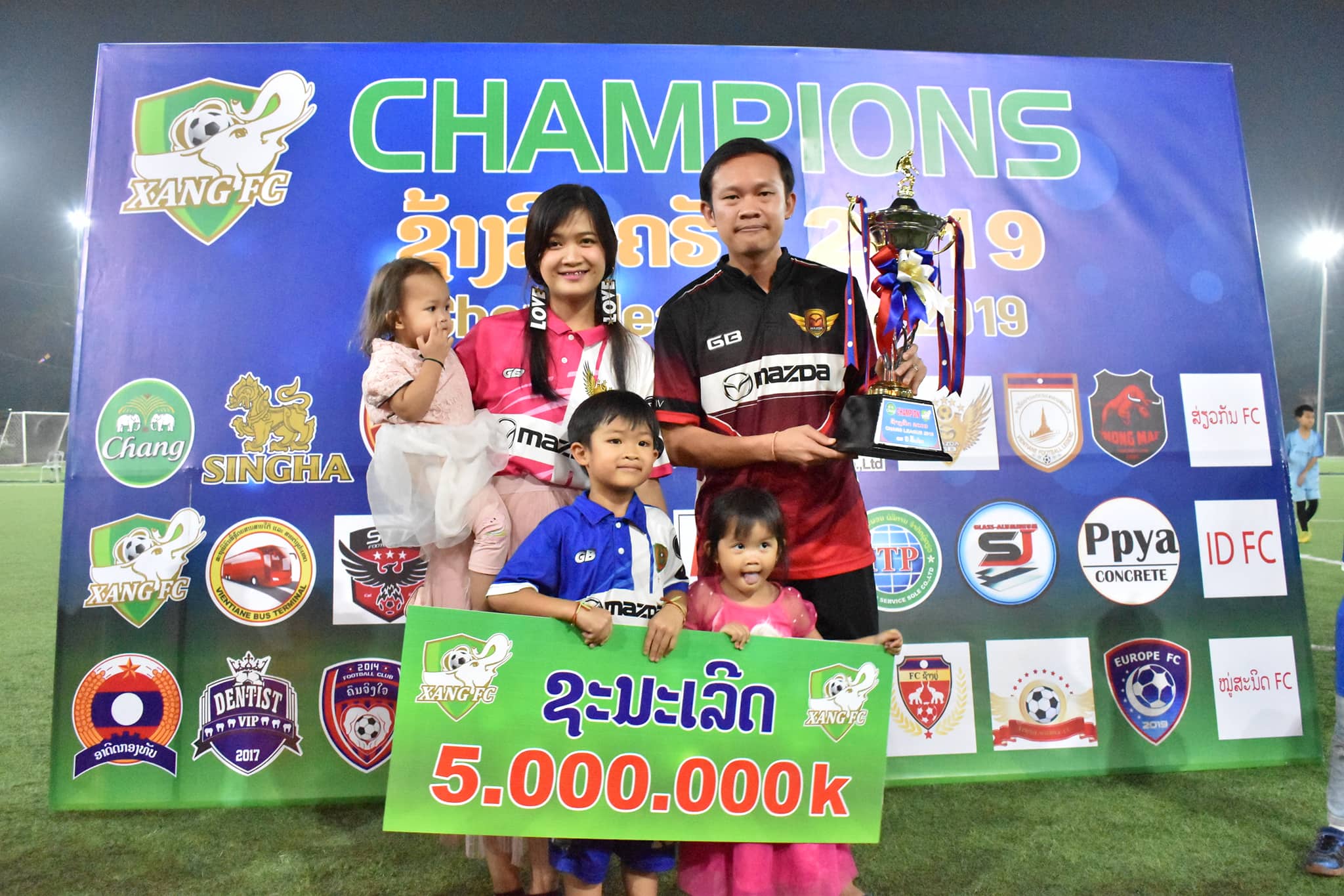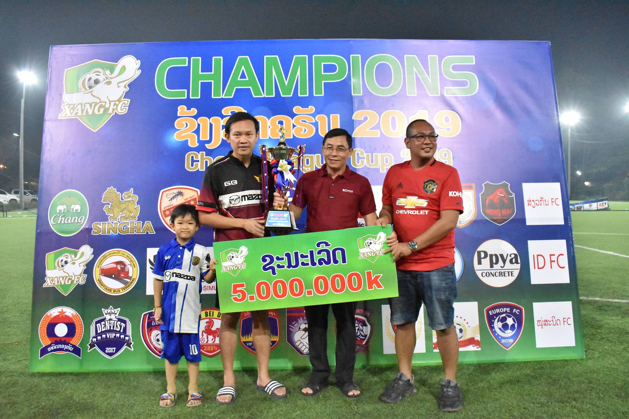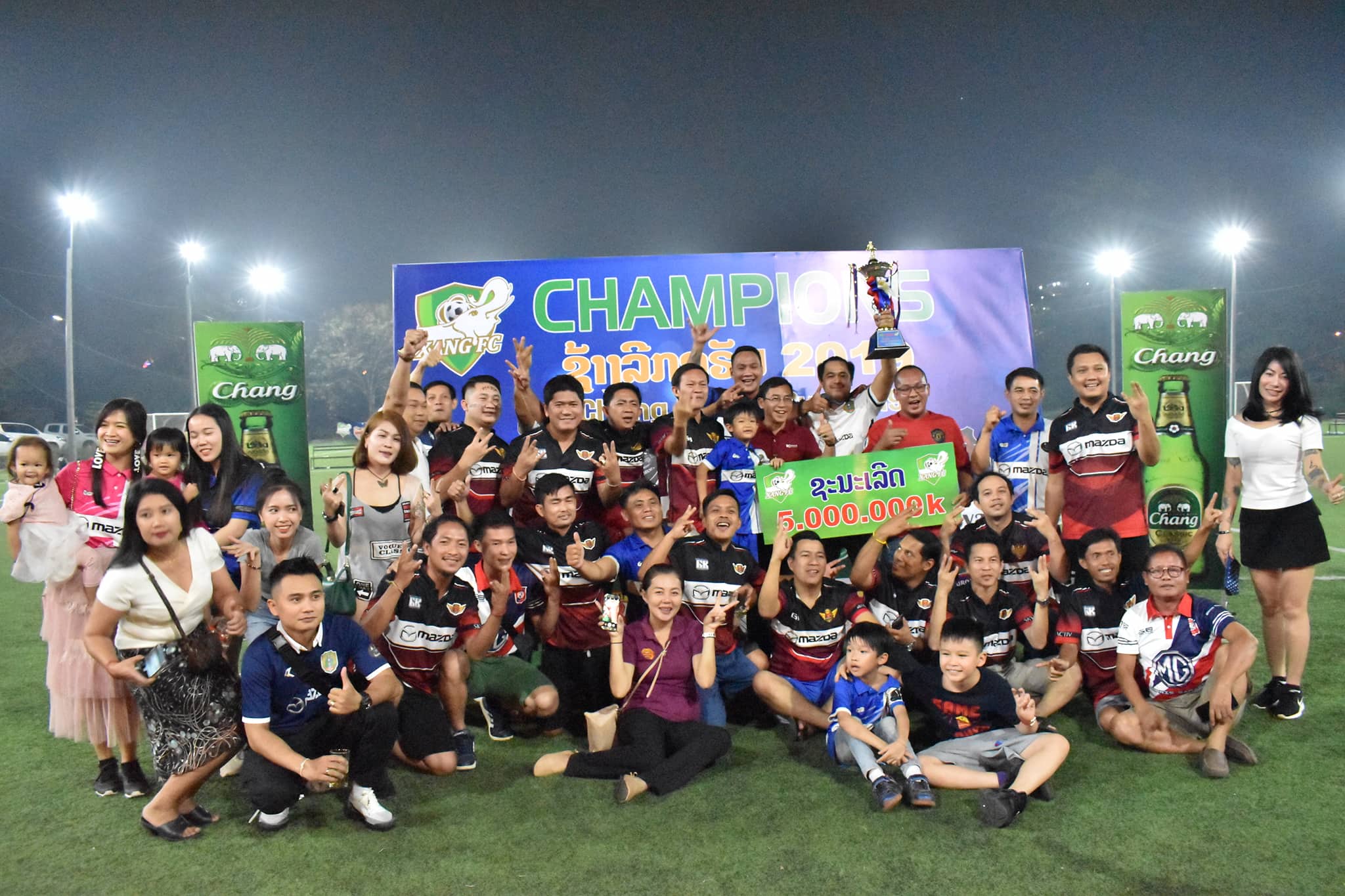 ທີມ ມາສດ້າ ຈີບີ ເອັບຊີ ລົງສະໜາມ 9 ນັດ ຊະນະ 8 ນັດ ແລະສະເໝີ 1 ນັດ ລວມມີ 25 ຄະແນນ ເປັນອັນດັບທີ 1 ຄວ້າ ແຊັມການແຂ່ງຂັນກີລາບານເຕະ 9 ຄົນຮຸ່ນອາຍຸບໍ່ເກີນ 35 ປີ ຊີງຂັນສະໜາມເຕະບານຫຍ້າທຽມຊ້າງ ເອັບຊີ ຫຼື ລາຍການຊ້າງລີກຄັບ 2019 ເພື່ອສ້າງຂະບວນການສະເຫຼີມສະຫຼອງວັນສ້າງຕັ້ງສະໜາມຫຍ້າທຽມຊ້າງເອັບຊີຄົບຮອບ7 ປີ ແລະຂໍ່ານັບຮັບຕ້ອນວັນຊາດທີ 2 ທັນວາຄົບຮອບ 44 ປີ (2 ທັນວາ1975ຫາ2ທັນວາ2019).