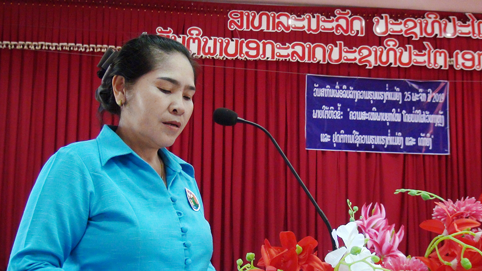 ທ່ານ ນາງ ມະໄລທອງ ວົງນາດ ປະທານສະຫະພັນແມ່ຍິງເມືອງທ່າແຕງໄດ້ຊີ້ໃຫ້ເຫັນວ່າ: ວັນສາກົນຢຸດຕິການໃຊ້ຄວາມຮຸນແຮງຕໍ່ແມ່ຍິງວັນທີ 25 ພະຈິກ ແມ່ນໄດ້ຖືກຍົກຂຶ້ນທໍາອິດໃນອາເມລິກາລາຕິນ ແລະ ໄດ້ແຜ່ຂະຫຍາຍໄປສູ່ປະເທດຕ່າງໆໃນທົ່ວໂລກໃຫ້ເປັນວັນຢຸດຕິການໃຊ້ຄວາມຮຸນແຮງຕໍ່ແມ່ຍິງ ແລະໄດ້ຖືກປະກາດເປັນຄັ້ງທໍາອິດໃນກອງປະຊຸມນັກເຄື່ອນໄຫວສົ່ງເສີມດ້ານສິດທິແມ່ຍິງໃນຂົງເຂດອາເມລິກາລາຕິນ ແລະຄາຣິບຽນເຊິ່ງຈັດຂຶ້ນທີ່ນະຄອນໂບໂກຕາປະເທດໂຄລົມເບຍລະຫວ່າງວັນທີ 18-21 ກໍລະກົດ 1981 ເພື່ອລະນຶກເຖິງວິລະກຳຂອງສາມເອື້ອຍນ້ອງຕະກູນມີຣາບານຈາກສາທາລະນະລັດໂດມີນີ ແກນ ທີ່ຖືກລອບຂ້າຕະກຳຢ່າງໂຫດຮ້າຍ