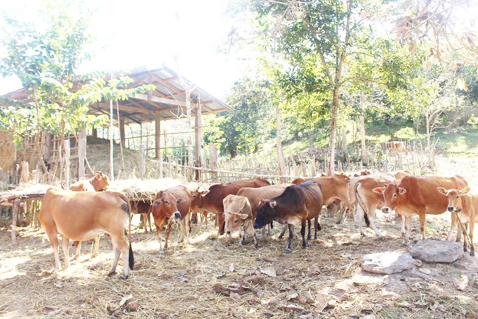 ທ່ານ ໄມ່ອິ່ນ ໄຊຍະນີ ຍັງໃຫ້ຮູ້ຕື່ມວ່າ: ການລ້ຽງງົວຕອນທຳອິດແມ່ນຍັງລ້ຽງແບບຊະຊາຍອາໄສແບບທຳມະຊາດ, ປ່ອຍປະຕາມທົ່ງໄຮ່ທົ່ງນາແຕ່ເມືອພັກ-ລັດໄດ້ມີທິດຊີ້ນຳຫັນເອົາການປູກການລ້ຽງຢູ່ພາຍໃນເມືອງເປັນທ່າແຮງສຳຄັນ ຈາກນັ້ນຕົນ ແລະ ຄອບຄົວຈຶ່ງຕັດສິນໃຈຊື້ດິນທີ່ຕິດກັບດິນຂອງຕົນເອງຈຳນວນໜຶ່ງລ້ອມເປັນຄອກເພື່ອລ້ຽງງົວຂອງຕົນ, ປະຈຸບັນມີເນື້ອທີ່ພຽງແຕ່ 5 ເຮັກ ຕາ, ໃນນັ້ນມີການຂະຫຍາຍແຜ່ພັນຂອງງົວໃນ 1 ປີແມ່ນເພີ່ມຂຶ້ນ 15 ຫາ 18 ໂຕ, ສະນັ້ນຈຶ່ງໄດ້ຈຳກັດການແຜ່ຂະຫຍາຍຂອງງົວໂດຍກຳນົດເອົາປີໜຶ່ງພຽງແຕ່ 30 ຫາ 40 ໂຕເທົ່ານັ້ນ, ສ່ວນການບຳລຸງຮັກສາບົົວລະບັດນັ້ນຕົນເອງກໍ່ບໍ່ມີປະສົບການໃນການຮຽນຮູ້ມາ ກ່ອນ, ອາໄສແຕ່ທາງຫ້ອງການກະສິກຳ ແລະປ່າໄມ້ເມືອງເປັນຜູ້ໃຫ້ທິດຊີ້ນຳ ແລະຮຽນຮູ້ຈາກປະສົບການໂດຍອາໄສຄວາມສິ້ນເຄີຍໃນການລ້ຽງມາແຕ່ກີ້ເຊິ່ງໃນປີໜຶ່ງຈະສັກຢາປ້ອງກັນ 2 ຄັ້ງ ໃນນັ້ນບາງເທື່ອກໍ່ມີໂຄງການມາຊ່ວຍເຫຼືອທາງດ້ານຢາປ້ອງກັນ, ຖ້າຫາກບໍ່ມີກໍ່ຊື້ມາສັກເອງ, ປະຈຸບັນລາຍຮັບໃນການລ້ຽງງົວປີໜຶ່ງແມ່ນໄດ້ 15 ຫາ 30 ລ້ານກີບ, ເຮັດໃຫ້ຊີວິດການເປັນຢູ່ຂອງຄອບຄົວດີຂຶ້ນຫຼາຍກວ່າເມື່ອກ່ອນຈົນສາມາດສົ່ງລູກຮຽນຈົນຈົບວິຊາຊີບທັງ 3 ຄົນ, ມີເຮືອນຢູ່ທີ່ຖາວອນ, ມີລົດ ໄຖນາເດີນຕາມ ແລະມີໂຮງສີເຂົ້າ, ມີຊີວິດທີ່ໜັ້ນຄົງຫຼາຍຂຶ້ນ.