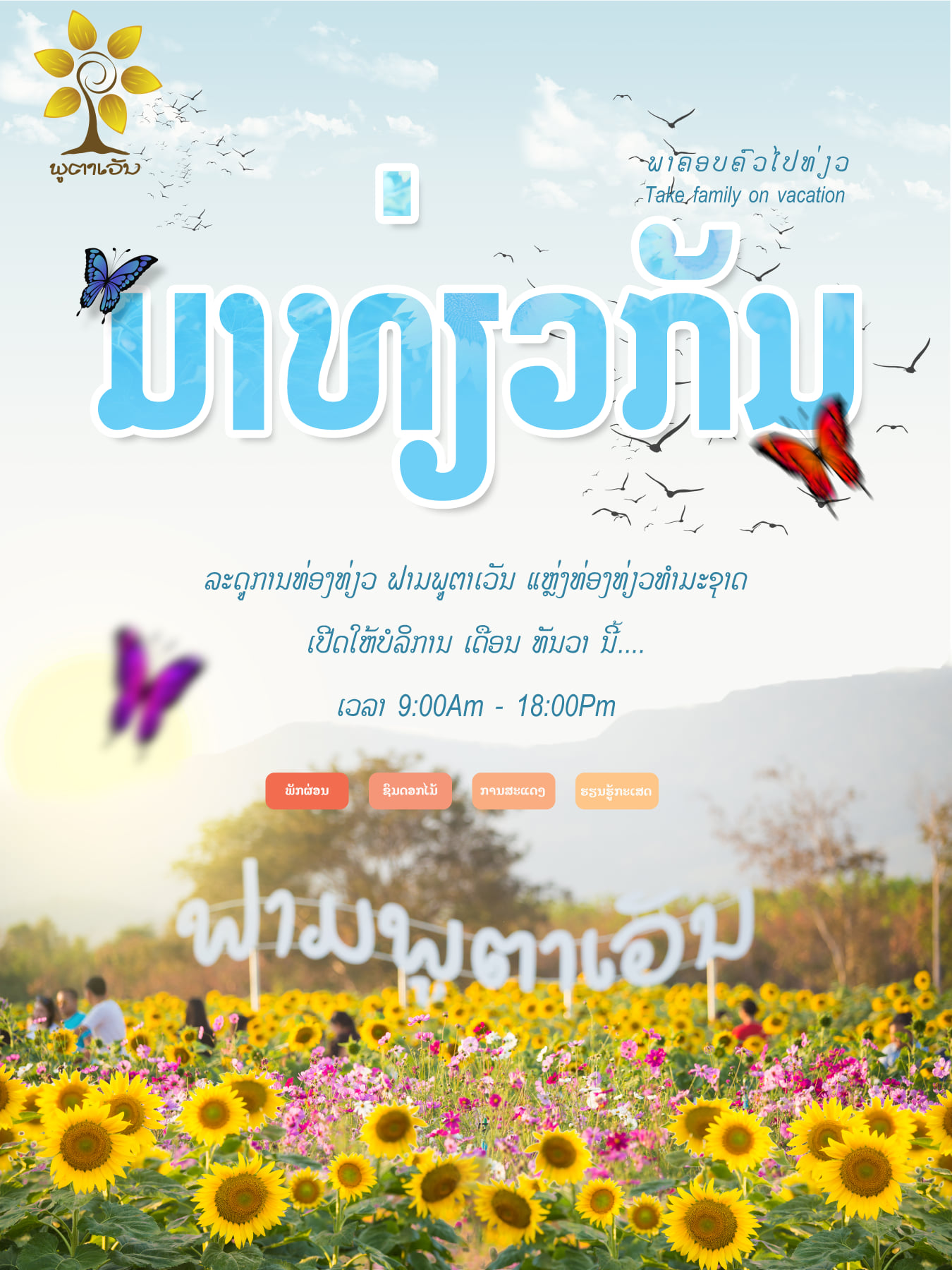 ທ່ານ ນາງ ດາລຸນ ນີດວງປະເສີດ ເຈົ້າຂອງຟາມພູຕາເວັນໃຫ້ສຳພາດວ່າ: ຟາມພູຕາເວັນເປັນແຫຼ່ງທ່ອງທ່ຽວກະສິກຳເປັນໂຄງການທີ່ສ້າງຂຶ້ນບົນພື້ນຖານຄວາມຮຽກ ຮ້ອງຕ້ອງການຂອງຊາວກະສິກອນ ແລະຜູ້ບໍລິໂພກທີ່ຕ້ອງການພືດຜັກຊະນິດຕ່າງໆທີ່ມີຄຸນນະພາບສະອາດ,ປອດສານພິດປະກອບມີຟາມສັດລ້ຽງ, ພືດໄມ້ປະດັບ, ພືດຜັກກິນໃບ, ສວນໝາກນາວ, ດອກຕາເວັນ, ໝາກເລັ່ນ ແລະອື່ນໆ ໂດຍຈະເນັ້ນໃສ່ການປະຕິບັດວຽກງານກະເສດການສົ່ງເສີມການຜະລິດສົ່ງເສີມການຄົ້ນຄວ້າວັດຖຸດິບຈົນມາເປັນຜະລິດຕະພັນສຳເລັດຮູບ.