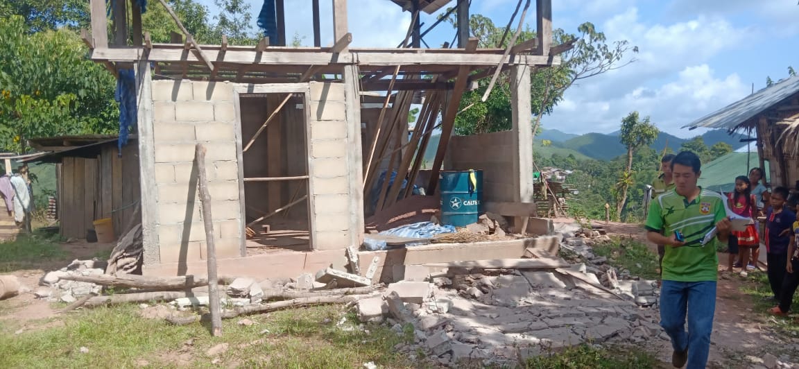ສໍາລັບການຊ່ວຍເຫຼືອເບື້ອງຕົ້ນທາງອົງການປົກຄອງເມືອງກໍ່ຄືຄະນະກໍາມະການປ້ອງກັນ ແລະຄວບຄຸມໄພພິບັດຂັ້ນແຂວງ, ຂັ້ນເມືອງ, ໄດ້ນໍາເອົາກໍາລັງ ປກຊ-ປກສ ພະນັກງານເຂົ້າໃຫ້ການຊ່ວຍເຫຼືອ, ສ້ອມແປງເຮືອນຊານໃຫ້ຄອບຄົວທີ່ໄດ້ຮັບຜົນກະທົບເພື່ອໃຫ້ເຂົາເຈົ້າໄດ້ມີທີ່ຢູ່ຊົ່ວຄາວປະຈຸບັນຄວາມຕ້ອງການເຄື່ອງຊ່ວຍເຫຼືອທີ່ຈຳເປັນໃນເບື້ອງຕົ້ນຄື: ດິນບ໊ອກ ຫຼື ດິນຈີ່, ຊີມັງ, ກະເບື້ອງ, ເຫຼັກເສັ້ນ, ເຫຼັກຕາປູ, ຫີນແຮ່, ແລະຊາຍ.