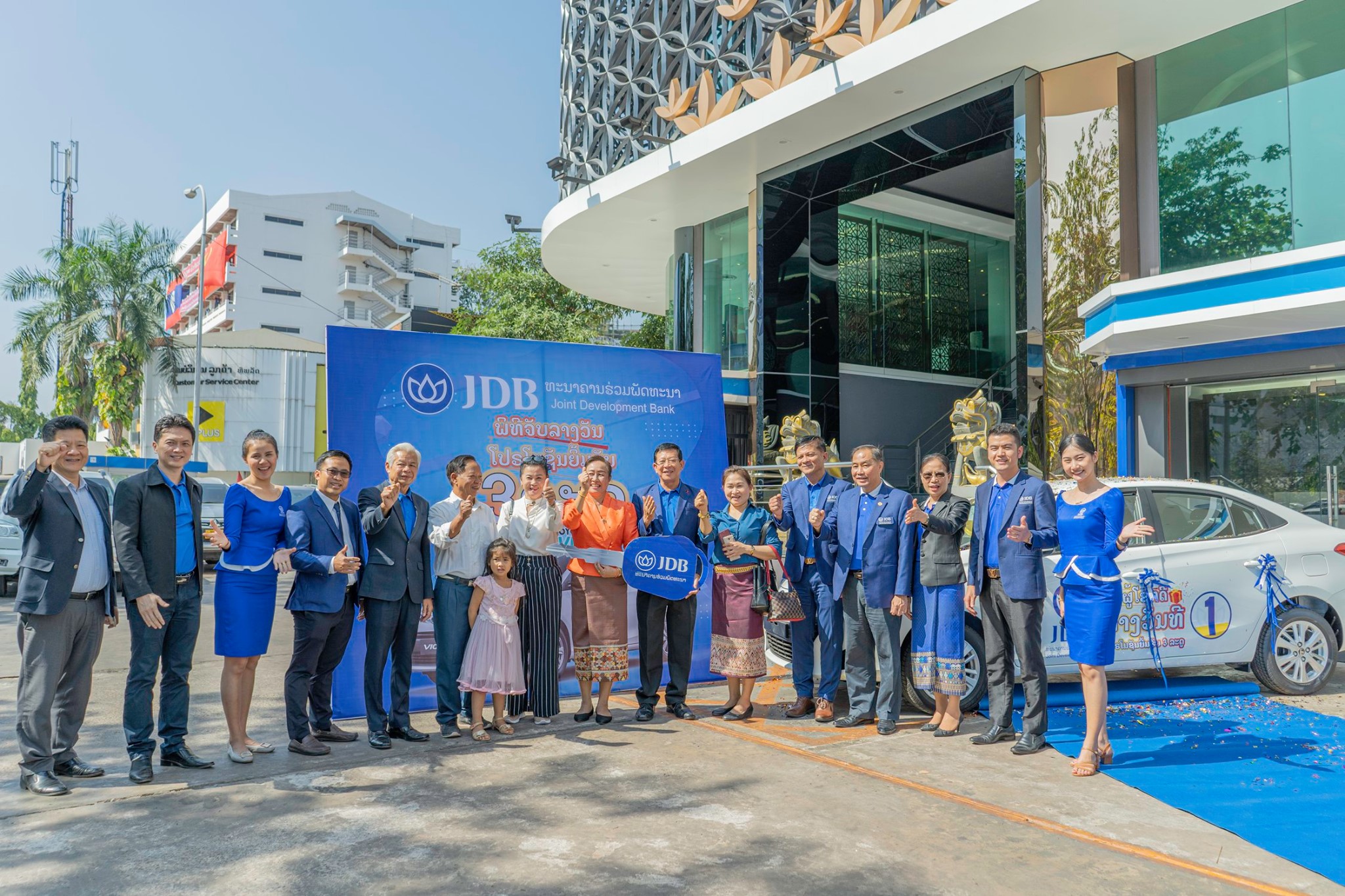 ໃນຕອນເຊົ້າວັນທີ 22 ພະຈິກ 2019 ທີ່ສໍານັກງານໃຫຍ່ທະນາຄານຮ່ວມພັດທະນານະຄອນຫຼວງວຽງຈັນ ໄດ້ຈັດພິທີມອບລົດເກງ TOYOTA VIOS ໃຫ້ລູກ ຄ້າຜູ້ໂຊກດີທີ່ໃຊ້ບໍລິການຜະລິດຕະພັນຂອງທະນາຄານຮ່ວມພັດທະນາເປັນກຽດເຂົ້າຮ່ວມໂດຍ ທ່ານ ວິໄລ ສີພະພອນ ຜູ້ອໍານວຍການໃຫຍ່ທະນາຄານຮ່ວມພັດທະນາ ພ້ອມດ້ວຍຜູ້ບໍລິຫານລະດັບສູງ ແລະພະນັກງານທີ່ກ່ຽວຂ້ອງກໍໄດ້ເຂົ້າຮ່ວມຢ່າງພ້ອມພຽງ.