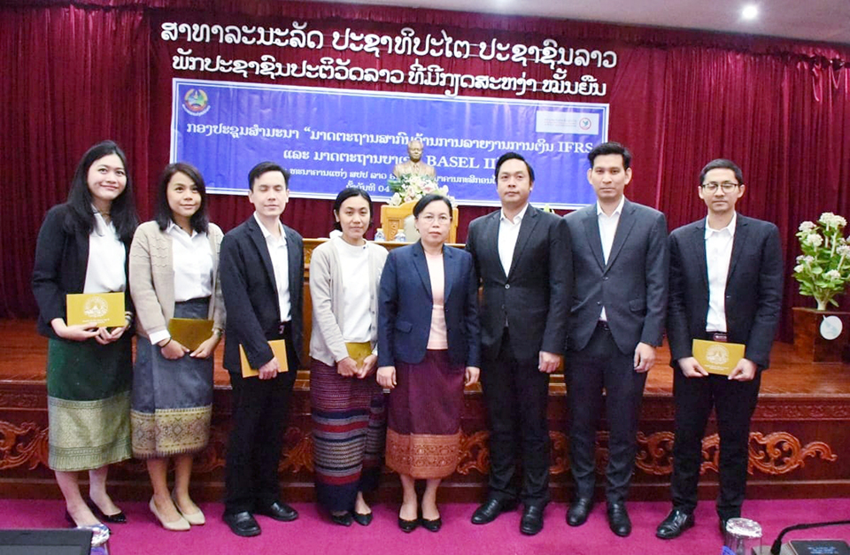 ມາດຕະຖານ BASEL II” ໃນວັນທີ 4 ທັນວາ 2019 ທີ່ ທຫລ ໂດຍການໃຫ້ກຽດເຂົ້າຮ່ວມຂອງທ່ານ ນາງ ຂັນແກ້ວ ຫຼ້າມະນີເງົາ ຫົວໜ້າກົມບັນຊີ ແລະການເງິນ; ພ້ອມນີ້, ກໍມີທ່ານ ຈະຕຸພອນ ບຸຊະຍະອັງກູນ ຜູ້ຈັດ ການສາ ຂາທະນາຄານກະສິກອນໄທ ຈຳກັດສາຂານະຄອນຫຼວງວຽງຈັນ ພ້ອມດ້ວຍນັກວິທະຍາກອນ ແລະ ບັນດາພະນັກງານຈາກກົມ-ທຽບເທົ່າກົມກ່ຽວຂ້ອງເຂົ້າ ຮ່ວມ.