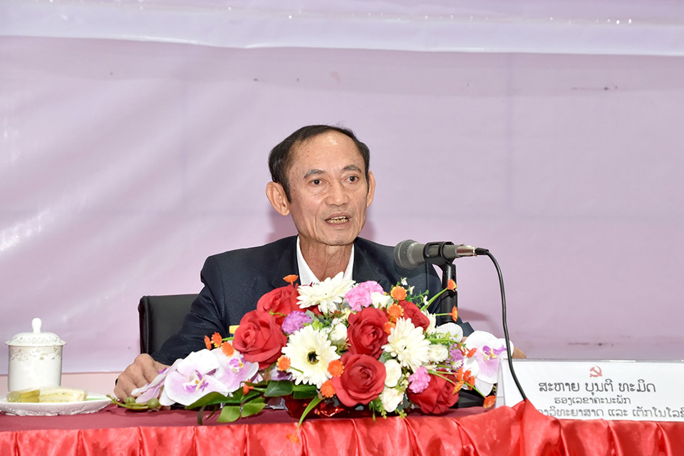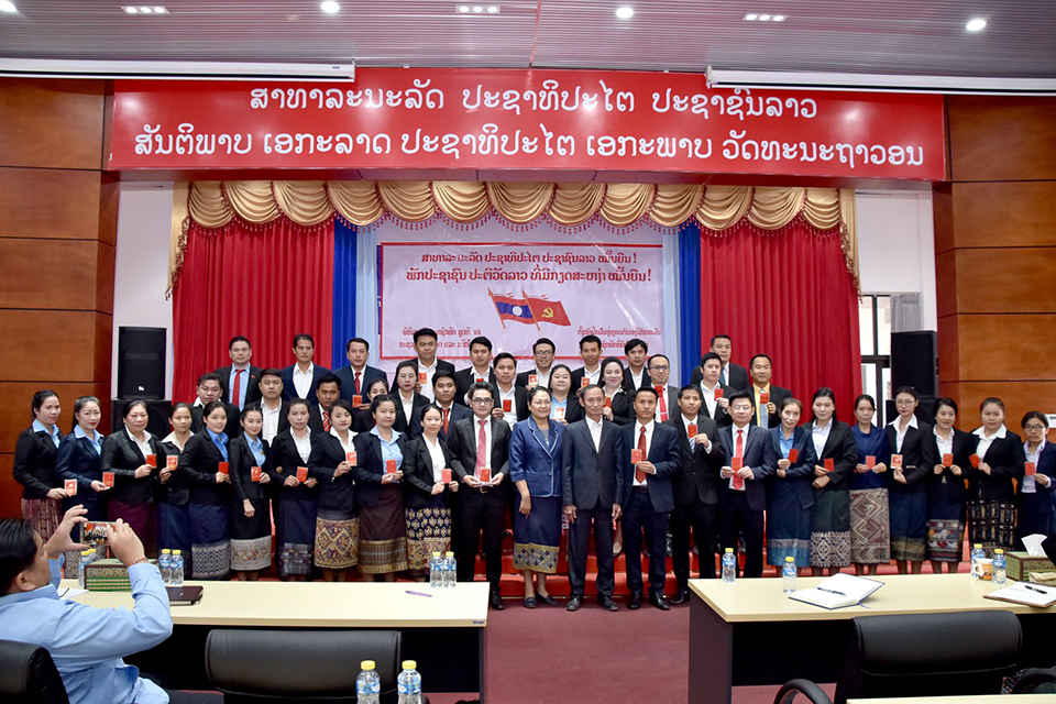 ກະຊວງວິທະຍາສາດ ແລະເຕັກໂນໂລຊີ (ກວຕ) ຈັດພິທີມອບບັດສະມາຊິກພັກຊຸດທີ VII ພ້ອມທັງປາຖະກະຖາວັນສະຖາປະນາ ສປປ ລາວ ຄົບຮອບ 44 ປີ ແລະ ວັນເກີດປະທານ ໄກສອນ ພົມວິຫານ ຄົບຮອບ 99 ປີ ຂຶ້ນວັນທີ 4 ທັນວາ 2019 ທີ່ສະຖາບັນຄຸ້ມຄອງວິທະຍາສາດ ແລະ ເຕັກໂນໂລຊີ ກວຕ ເປັນປະທານຂອງສະ ຫາຍ ບຸນຕີ ທະມິດ ຮອງເລຂາຄະນະພັກກະຊວງຮອງລັດຖະມົນຕີ ກວຕ ມີບັນດາສະຫາຍຄະນະພັກຄະນະປະຈໍາ ແລະ ສະມາຊິກພັກສົມບູນພາຍໃນກະຊວງເຂົ້າ ຮ່ວມ.