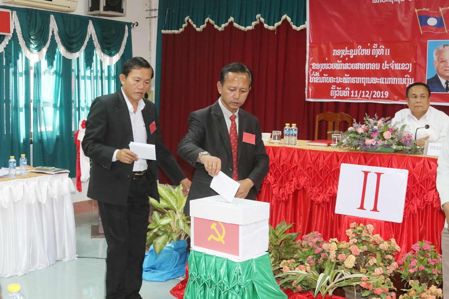 ວັນທີ 11 ທັນວາ 2019 ທີ່ຫ້ອງປະຊຸມພະແນກການເງິນແຂວງ, ໜ່ວຍພັກສ່ວຍສາອາກອນປະຈໍາ ແຂວງເຊກອງ ໄດ້ຈັດກອງປະຊຸມໃຫຍ່ຄັ້ງທີ II ຂອງຕົນຂຶ້ນ ໂດຍພາຍໃຕ້ການເປັນປະທານຂອງສະຫາຍ ລໍາທອງ ຍົນມະຫາໄຊ ເລຂາໜ່ວຍພັກ, ຫົວໜ້າສ່ວຍສາອາກອນປະຈໍາແຂວງ ແລະເຂົ້າຮ່ວມມີສະຫາຍ ອ້ວນຄໍາທຸງ ໄຊ ກໍາມະການພັກແຂວງ, ຫົວໜ້າຄະນະຈັດຕັ້ງແຂວງ; ພ້ອມນີ້ກໍມີຄະນະພັກຮາກຖານ, ຄະນະໜ່ວຍພັກ, ສະມາຊິກພັກ ແລະແຂກຖືກເຊີນເຂົ້າຮ່ວມຢ່າງພ້ອມພຽງ.