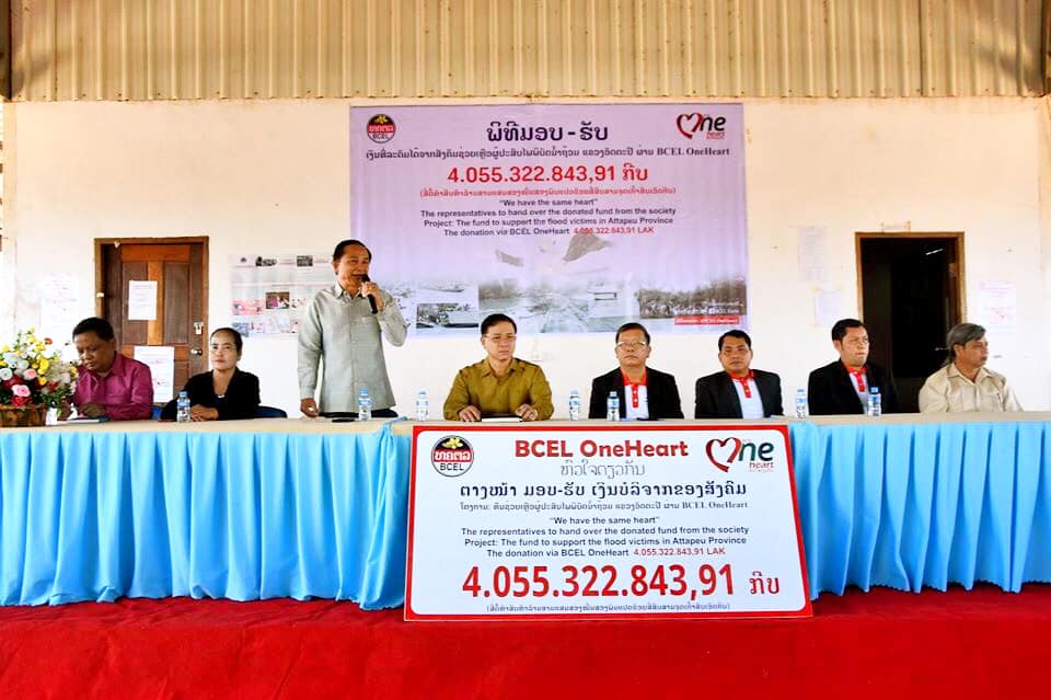 ໃນພິທີ ທ່ານ ບົວວັນ ສີລະລິວົງ ຮອງອໍານວຍການໃຫຍ່ທະນາຄານການຄ້າຕ່າງປະເທດລາວມະຫາຊົນກໍໄດ້ໃຫ້ກຽດຂຶ້ນກ່າວຈຸດປະສົງແລກປ່ຽນຄໍາເຫັນວ່າ: ຈໍານວນເງິນທີ່ໄດ້ມອບໃນຄັ້ງນີ້ແມ່ນໄດ້ມາການລະດົມຈາກສັງຄົມທັງພາຍໃນ ແລະຕ່າງປະເທດຜ່ານ BCEL oneHeart ໃຫ້ແກ່ຜູ້ຖືກຜົນກະທົບຈາກໄພພິບັດນໍ້າຖ້ວມຈາກເຂື່ອນເຊປຽນ-ເຊນໍ້ານ້ອຍແຕກທີ່ເມືອງສະໜາມໄຊ, ໂດຍມີຜູ້ເຂົ້າຮ່ວມບໍລິຈາກທັງພາຍໃນ ແລະ ຕ່າງປະເທດມີທັງໝົດ 26.991 ຄັ້ງ, ເປັນເງິນ 4,05 ຕື້ກີບ ໃຫ້ແກ່ 9 ບ້ານຄື: ບ້ານໂຄກກ່ອງ, ບ້ານແທຄຸ້ມທ່າອວນ, ບ້ານສະໝອງໃຕ້, ບ້ານທ່າແສງຈັນ, ບ້ານທ່າຫີນ, ບ້ານຫີນລາດ, ບ້ານໃໝ່, ບ້ານໄຊດອນໂຂງ ແລະບ້ານຕະມໍ ຢອດ.