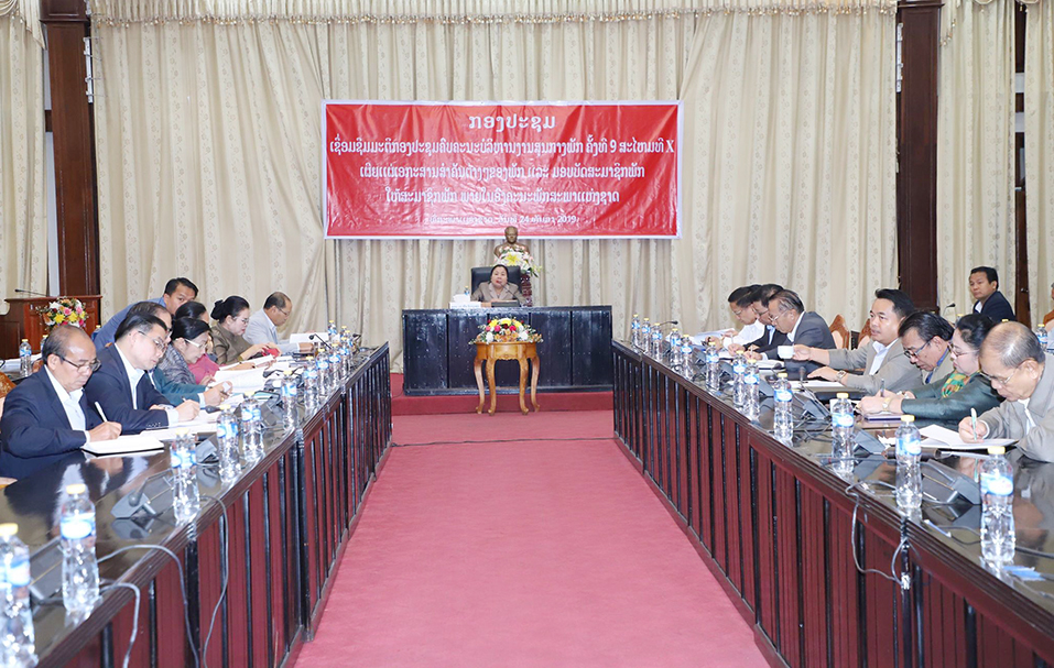 ກອງປະຊຸມເຊື່ອມຊຶມມະຕິກອງປະຊຸມຄົບຄະນະບໍລິຫານງານສູນກາງພັກຄັ້ງທີ 9 ສະໄໝທີ X, ເຜີຍແຜ່ເອກະສານສໍາຄັນຕ່າງໆຂອງພັກ ແລະ ມອບບັດສະມາຊິກພັກໃຫ້ສະມາຊິກພັກພາຍໃນອົງຄະນະພັກສະພາແຫ່ງຊາດໃນວັນທີ 24 ທັນວາ ທີ່ນະຄອນຫຼວງວຽງຈັນ ໂດຍເປັນປະທານຂອງທ່ານ ນາງ ສີໃສ ລືເດດມູນສອນ ຮອງເລຂາຄະນະພັກ, ຮອງປະທານສະພາແຫ່ງຊາດ, ມີບັນດາກໍາມະການສູນກາງພັກ,ອົງການສໍາຮອງສູນກາງພັກ, ຄະນະກົມ, ຄະນະສູນ, ຄະນະພະແນກ, ສະມາຊິກພັກສົມບູນ-ສໍາຮອງພາຍສະພາແຫ່ງຊາດເຂົ້າຮ່ວມ.