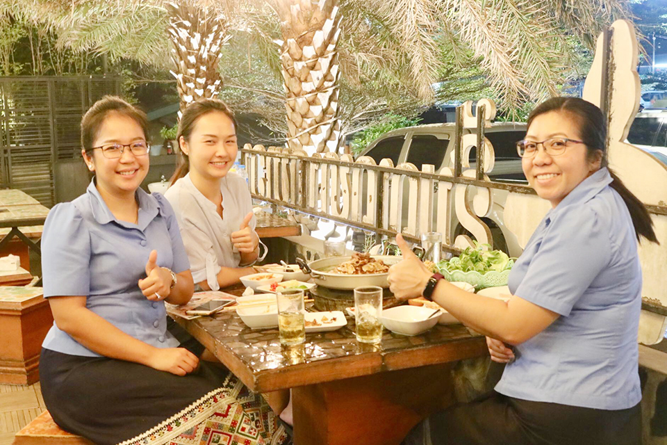 ແມ່ນນຳເອົາຢູ່ຕະຫຼາດບ້ານເຮົານອກນັ້ນຍັງມີແຈ່ວສູດເດັດເອກະລັກຂອງຮ້ານ, ມີນຳຊຸບທີ່ຕົ້ມຄ້ຽວຈາກກະດູກແລ້ວປະສົມໃສ່ນ້ຳໝາກພ້າວໃຫ້ລົດຊາດຫອມແຊບສຳ ລັບລາຍການອາຫານລາຄາແມ່ນຂາຍຈານ 35 ພັນກີບສ່ວນຜັກຊຸດ 10 ພັນ ແຕ່ເມື່ອລູກຄ້າກິນອາຫານຮອດ 3 ຈານທາງຮ້ານຈະແຖມໃຫ້ອີກ 1 ຈານ ພ້ອມນັ້ນໃນຊ່ວງເທສະການຍັງສ້າງໂປຣໂມຊັນສ່ວນຫຼຸດ ຫຼື ມາຈັດງານວັນເກີດທາງຮ້ານຈະແຖມເຄັກໃຫ້ 1 ກ້ອນເພື່ອເປັນກິດຈະກຳແລກປ່ຽນເພີ່ມສີສັນຮອຍຍິ້ມໃຫ້ລູກຄ້າ.