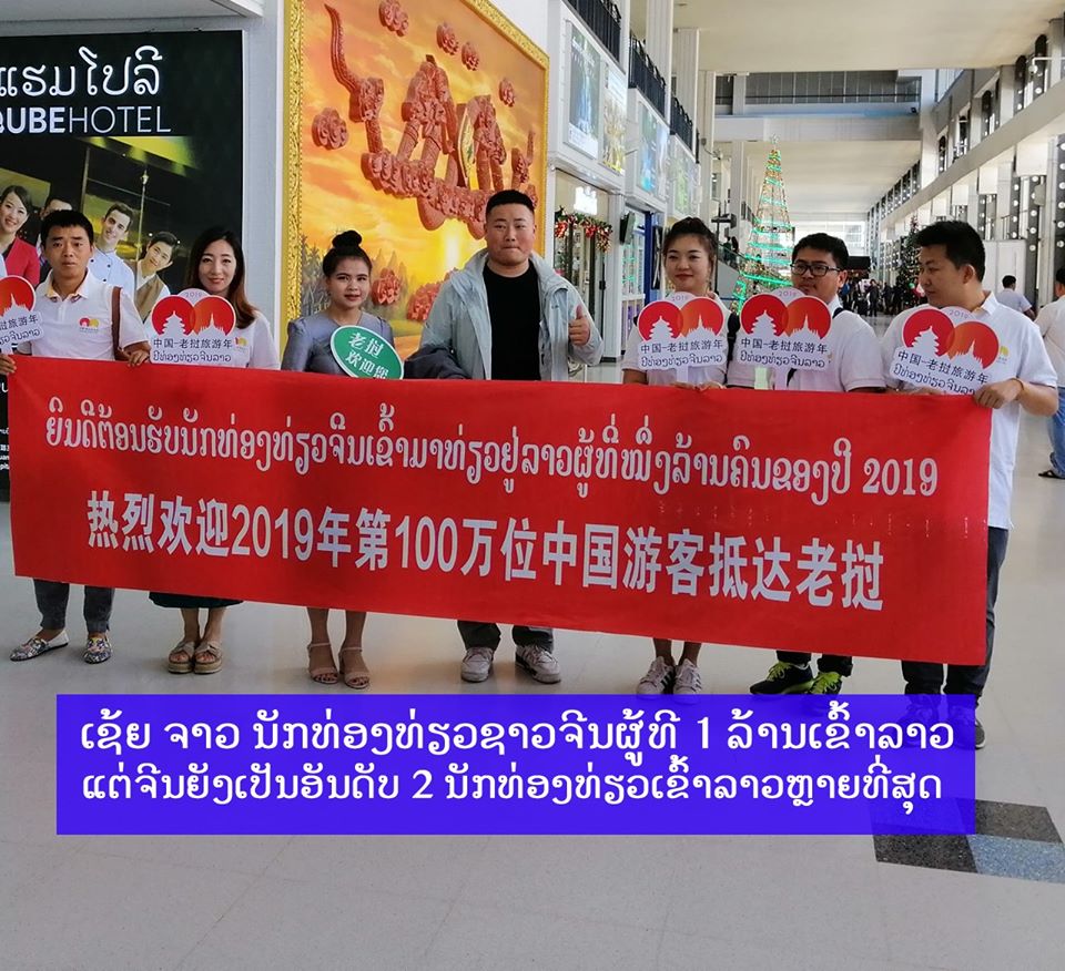 ໃນວັນທີ 31 ທັນວາ 2019 ຜ່ານມານີ້ຢູ່ສະໜາມບິນສາກົນວັດໄຕນະຄອນຫຼວງວຽງຈັນ ລາວໄດ້ຈັດພິທີຕ້ອນຮັບນັກທ່ອງທ່ຽວຈີນ ເຂົ້າມາລາວຜູ້ທີ 1 ລ້ານຄົນ ຂອງປີ 2019.