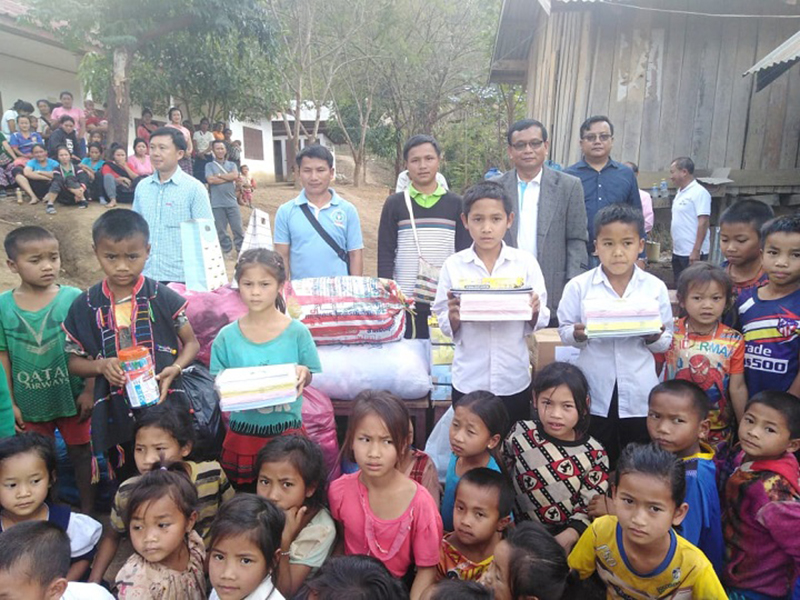 ສໍາລັບເຄື່ອງທີ່ນໍາໄປມອບໃນຄັ້ງນີ້ປະກອບມີ: ເຄື່ອງນຸ່ງຫົ່ມຈໍານວນ 7 ຖົງ, ປຶ້ມຂຽນ 36 ຕັບ, ບິກ 12 ກັບ, ສໍດຳ 24 ກັບ, ບານສົ່ງ, ກະຕໍ້ຫວາຍ ແລະອື່ນໆ ລວມເປັນມູນຄ່າທັງໝົດ 10 ລ້ານກວ່າກີບ, ຕາງໜ້າມອບໂດຍທ່ານ ພອນສະຫວັນ ພັນທະວິຈິດ ຫົວໜ້າພະແນກ ຖວທ ແຂວງອຸດົມໄຊ ແລະຮັບໂດຍນາຍບ້ານລວມທັງບັນດາຄະນະບ້ານ, ປະຊາຊົນຕະຫຼອດຮອດນ້ອງນັກຮຽນ.