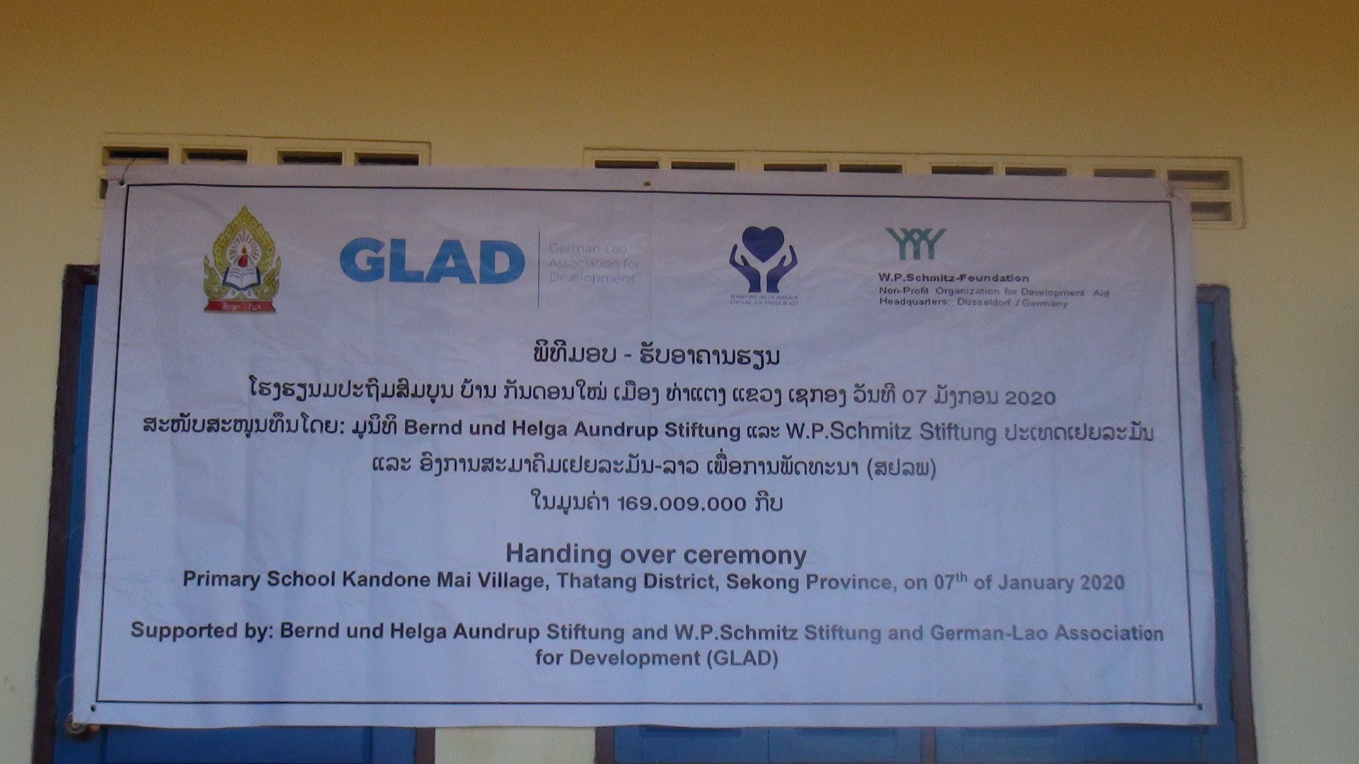 ພິທີມອບ-ຮັບໂຮງຮຽນປະຖົມຫຼັງໃໝ່ໃຫ້ບ້ານກັນດອນ ເມືອງທ່າແຕງ ແຂວງເຊກອງ ຈັດຂຶ້ນໃນວັນທີ 7 ມັງກອນ ຜ່ານມາທີ່ໂຮງຮຽນດັ່ງກ່າວລະຫ່ວາງທ່ານ ມີຊາເອວເດືອກ ປະທານໃຫ່ຍມູນນິທິສະມິດປະເທດເຢຍລະມັນເປັນຜູ້ມອບ ແລະ ທ່ານ ອຸດົມໄຊ ດອມສະຫັວນ ຮອງຫົວໜ້າຫ້ອງການສຶກສາທິການ ແລະ ກີລາເມືອງທ່າແຕງ ເປັນຜູ້ຮັບໂດຍມີທ່ານ ຄຳຜາຍ ສຸນີວັນ ຄະນະພະແນກສຶກສາທິການ ແລະກີລາແຂວງ,ທ່ານ ສຸກັນ ຈັນສີປະເສີດ ຫົວໜ້າຫ້ອງວ່າການປົກຄອງເມືອງພ້ອມດ້ວຍພາກສ່ວນກ່ຽວຂ້ອງເຂົ້າຮ່ວມ.