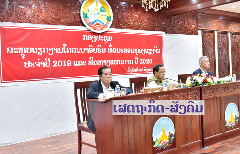 ກອງປະຊຸມສະຫຼຸບວຽກງານຂອງຄະນະໂຄສະນາອົບຮົມນະຄອນຫຼວງວຽງຈັນ (ນວ) ປະຈໍາປີ 2019 ແລະທິດທາງແຜນການປີ 2020 ໄດ້ຈັດຂຶ້ນໃນວັນທີ 8 ມັງ ກອນຜ່ານມາທີ່ ຫ້ອງວ່າການປົກຄອງ ນວ ໂດຍເປັນໃຫ້ກຽດເຂົ້າຮ່ວມຂອງທ່ານ ຄຳພັນ ພົມມະທັດ ຫົວໜ້າຄະນະໂຄສະນາອົບຮົມສູນກາງພັກ ແລະທ່ານ ອານຸພາບ ຕຸນາລົມ ປະທານສະພາປະຊາຊົນ ນວ ພ້ອມດ້ວຍຮອງເລຂາຄະນະບໍລິຫານງານພັກເລຂາຄະນະບໍລິຫານງານເມືອງເຈົ້າເມືອງ, ຫົວໜ້າພະແນກການອ້ອມຂ້າງ ແລະໂຄສະນາອົບຮົມ 9 ຕົວເມືອງ ແລະພະນັກງານຫຼັກແຫຼ່ງເຂົ້າຮ່ວມ.