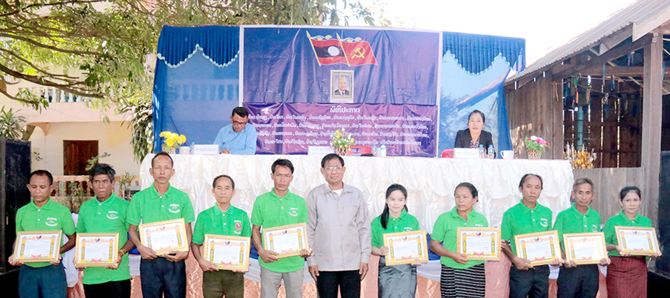 ຈາກນັ້ນໃນພິທີກໍ່ໄດ້ຜ່ານຂໍ້ຕົກລົງສະບັບເລກທີ 05/ຈມ.ສວ ສາລະວັນ, ລົງວັນທີ 6 ມັງກອນ 2020 ວ່າດ້ວຍການອະນຸມັດປະກາດ 26 ບ້ານເປັນບ້ານໜັກແໜ້ນເຂັ້ມແຂງ ປີ 2019 ແລະ ຜ່ານຂໍ້ຕົກລົງມອບໃບຢັ້ງຢືນບ້ານວັດທະນະທຳ 5 ບ້ານ ພ້ອມທັງມອບໃບຢັ້ງຢືນໃຫ້ແກ່ 26 ບ້ານເປັນບ້ານໜັກແໜ້ນເຂັ້ມແຂງ, ໂດຍເປັນກຽດມອບໃບຢັ້ງຢືນຂອງທ່ານ ບຸນມາກ ພອນທິດສະຫວັດ ປະທານກວດກາພັກ-ລັດເມືອງ ແລະທ່ານນາງ ບຸນຖັນ ແກ້ວມາລາ ຫົວໜ້າຫ້ອງການພາຍໃນເມືອງ.