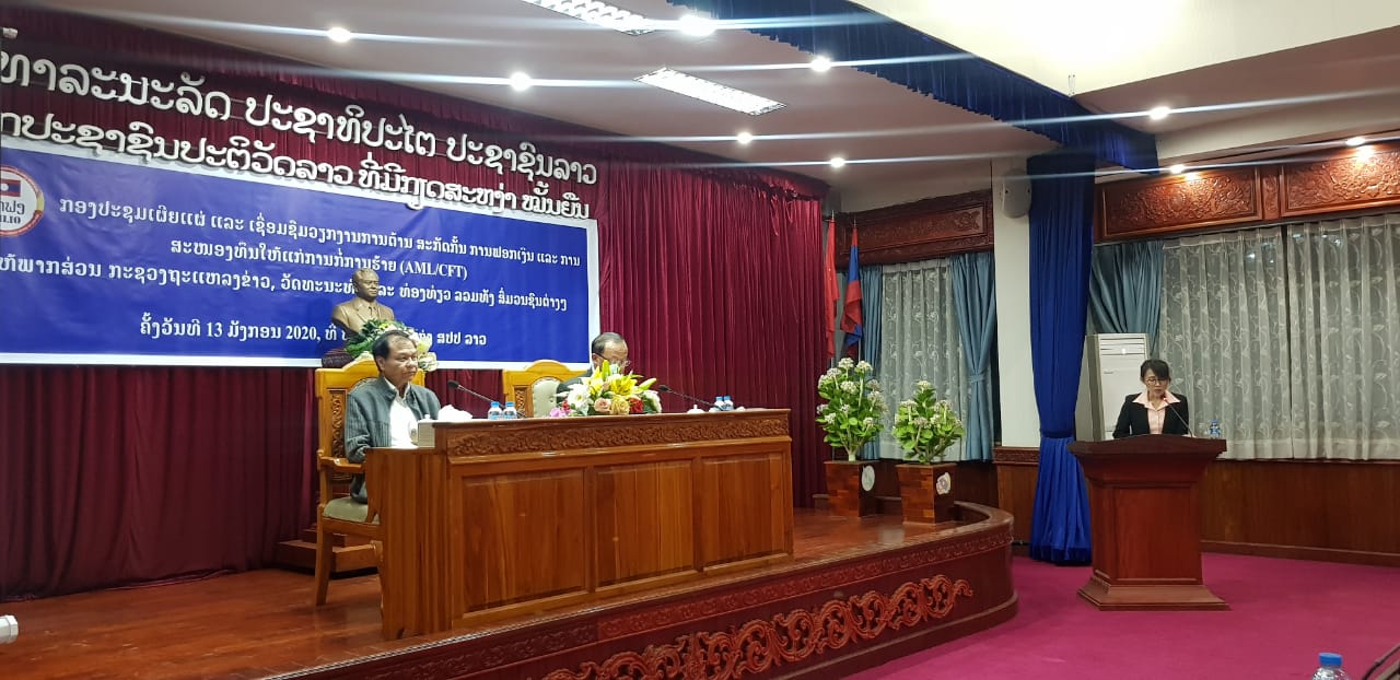 ສຳນັກງານຂໍ້ມູນຕ້ານການຟອກເງິນທະນາຄານແຫ່ງ ສປປ ລາວ (ທຫລ) ຮ່ວມກັບກະຊວງຖະແຫຼງຂ່າວ, ວັດທະນະທໍາ ແລະທ່ອງທ່ຽວໄດ້ຈັດຕັ້ງການເຜີຍແຜ່ວຽກງານຕ້ານການຟອກເງິນ ແລະ ການສະໜອງທຶນໃຫ້ແກ່ການກໍ່ການຮ້າຍໃນວັນທີ 13 ມັງກອນ 2020 ທີ່ຫ້ອງປະຊຸມ ທຫລ ໂດຍການໃຫ້ກຽດເຂົ້າຮ່ວມຂອງທ່ານ ສະຫວັນຄອນ ລາຊມຸນຕີ ຮອງລັດຖະມົນຕີກະຊວງຖະແຫຼງຂ່າວ, ວັດທະນະທໍາ ແລະທ່ອງທ່ຽວ; ທ່ານ ພຸດທະໄຊ ສີວິໄລ ຮອງຜູ້ວ່າການ ທຫລ, ບັນດາພະ ນັກງານຈາກຄະນະສະເພາະກິດ, ຈາກກະຊວງຖະແຫຼງຂ່າວ, ວັດທະນະທໍາ ແລະທ່ອງທ່ຽວ ແລະສື່ມວນຊົນເຂົ້າຮ່ວມ.