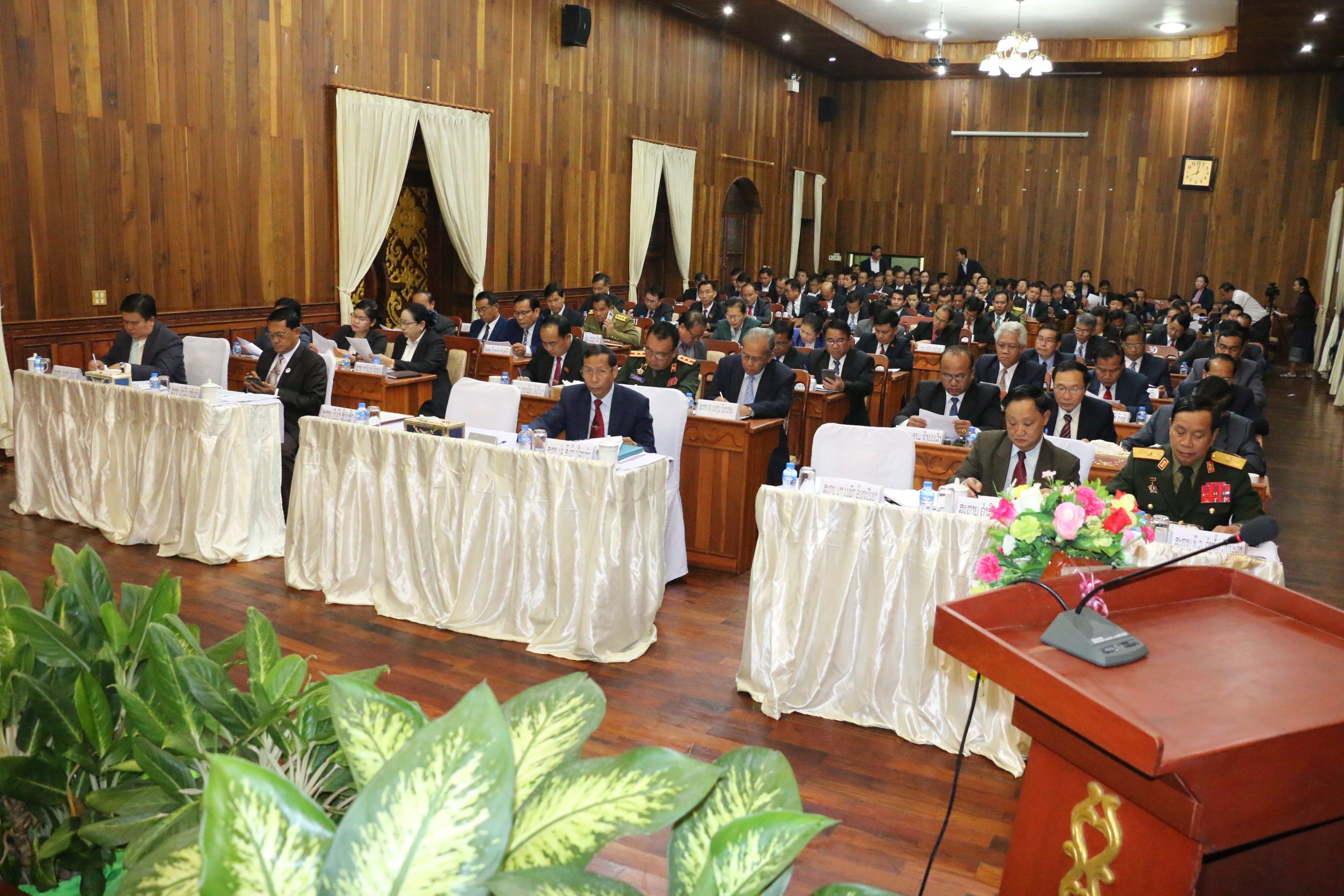 ຈາກນັ້ນສະຫາຍ ເພັງນິລັນ ຄໍາພັນເພັງ ຄະນະປະຈໍາພັກແຂວງ, ຮອງເຈົ້າແຂວງໄດ້ຜ່ານຮ່າງບົດສະຫຼຸບຕີລາຄາວຽກງານຮອບດ້ານປະຈຳປີ 2019 ແລະ ທິດທາງແຜນວຽກງານຈຸດສຸມປະຈຳປີ 2020, ບາງຕອນທ່ານໄດ້ໃຫ້ຮູ້ວ່າ: ໜຶ່ງປີຜ່ານມາເສດຖະກິດຂອງແຂວງຂະຫຍາຍຕົວຢູ່ໃນລະດັບ 8%, ຫຼຸດແຜນທີ່ວາງໄວ້ 0,7% , ມູນຄ່າຜະລິດຕະພັນພາຍໃນ GDP ບັນລຸໄດ້ 10.229 ຕື້ກີບ, ສະເລ່ຍຕໍ່ຫົວຄົນໄດ້ 27,70 ລ້ານກີບ ຫຼືເທົ່າກັບ 3.113 ໂດລາສະຫະລັດ,ໂຄງປະກອບເສດຖະ ກິດໄດ້ຫັນປ່ຽນໃນທິດຕັ້ງໜ້າກະສິກຳຂະຫຍາຍຕົວ 3,2%,ກວມເອົາ 29%ຂອງ GDP, ອຸດສາຫະກຳຂະຫຍາຕົວ12,6%, ກວມເອົາ 36% ຂອງGDP ແລະ ຂົງເຂດການບໍລິການຂະຫຍາຍຕົວ 5,2%,ກວມເອົາ 35% ຂອງ GDP,ສາມາດຈັດຕັ້ງປະຕິບັດລາຍຮັບໄດ້ 913,43 ຕື້ກີບ,ເທົ່າກັບ 94,98% ຂອງແຜນການປີ, ທຽບໃສ່ເວລາດຽວກັນຂອງປີຜ່ານມາເພີ່ມຂຶ້ນ 5,81%. ກອງປະຊຸມດັ່ງກ່າວບັນດາຜູ້ເຂົ້າຮ່ວມຈະໄດ້ພ້ອມກັນປະກອບຄໍາຄິດຄໍາເຫັນໃສ່ບົດຕ່າງໆ ແລະ ຈະໄດ້ດໍາເນີນກອງປະຊຸມໄປຈົນຮອດວັນທີ 18 ມັງກອນ ຈຶ່ງຈະສໍາເລັດ.