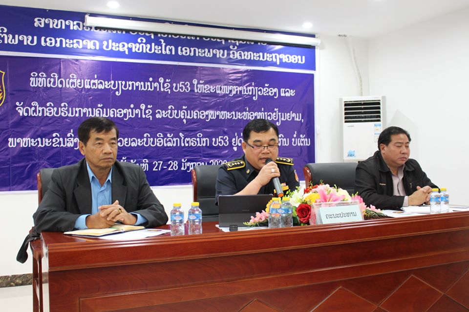 ວັນທີ 27 ມັງກອນ 2020 ທີ່ຫ້ອງປະຊຸມດ່ານພາສີສາກົນບໍ່ເຕ່ນແຂວງຫຼວງນໍ້າທາ,ໄດ້ເປີດນຳໃຊ້ລະບົບ ບ53 ເຜີຍແຜ່ລະບຽບການນຳໃຊ້ ບ 53 ໃຫ້ຂະແໜງການກ່ຽວຂ້ອງ ແລະການຄຸ້ມຄອງນໍາໃຊ້ລະບົບຄຸ້ມຄອງພາຫະນະທ່ອງທ່ຽວຢ້ຽມຢາມພາຫະນະຂົນສົ່ງສິນຄ້າດ້ວຍລະບົບເອເລັກໂຕຣນິກ ບ53. ໂດຍການເປັນປະທານຂອງທ່ານ ບຸນເກີດ ສຸວັນນະເສັນ ຫົວໜ້າກອງຄຸ້ມຄອງພາສີ 1, ໂດຍການເຂົ້າຮ່ວມທ່ານ ພົມມະສຸກ ວິໄລກຸນ ຫົວໜ້າຫ້ອງວ່າການແຂວງ, ທ່ານ ພອນໄຊ ຈັນທະສອນຫົວໜ້າຄຸ້ມຄອງດ່ານສາກົນບໍ່ເຕ່ນ, ຂະແໜງການທີ່ກ່ຽວຂ້ອງຂອງແຂວງຕະຫຼອດຮອດພະນັກງານວິຊາການເຂົ້າຮ່ວມ.